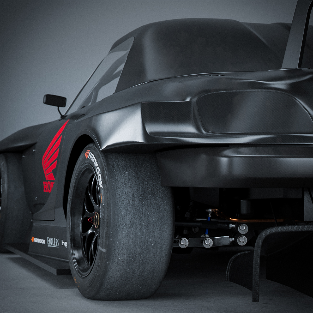 Такие ''крылья'' (обвес передний, спойлер-антикрыло задний) должны быть из-за чудовищного соотношения кг/лс у машины. В том смысле что тут условные 600-1000лс при таком ''весе'' будут ракетой, и она будет летать на перепадах трэка типа Nurburgring) Тут тыща лошадок как у Suzuki Escudo Pikes Peak Edition?)) Бешеная табуретка с 500 км/ч лимитом)
