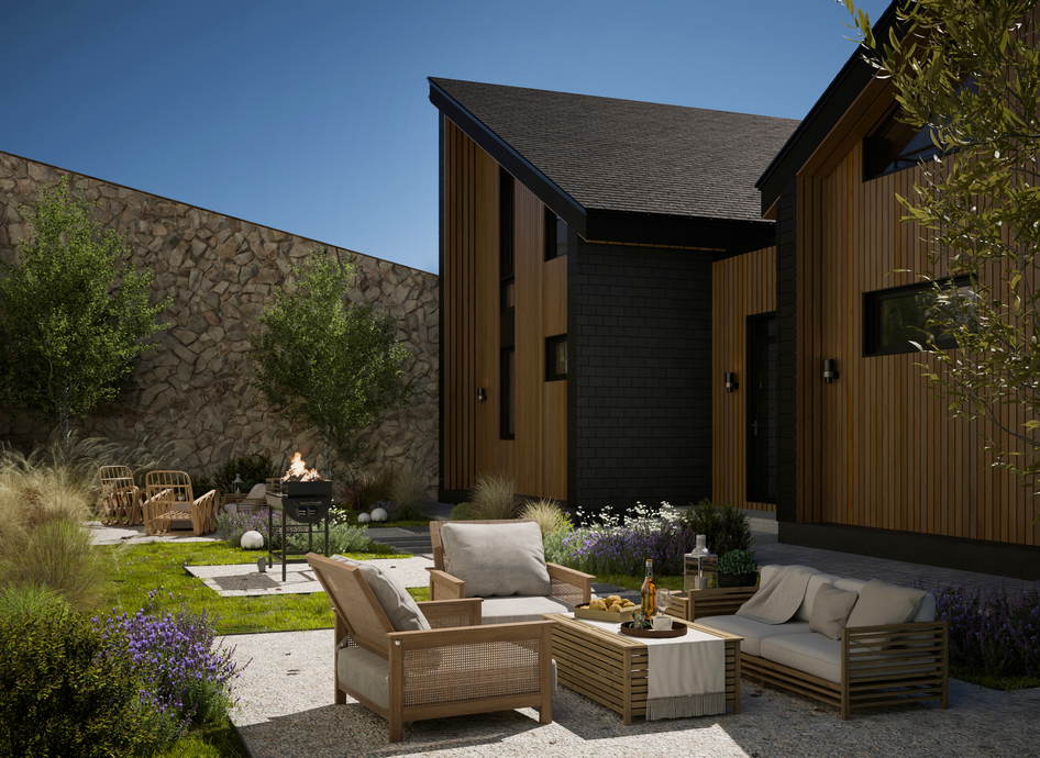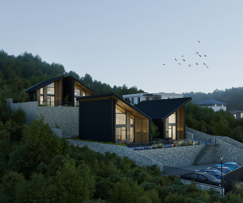 Визуализация участка с домами отдыха на рельефе. Check out for more images -