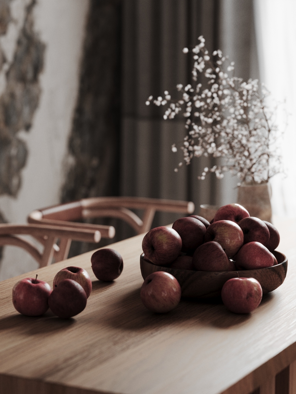в визуальном оформлении тщательно подобран декор с акцентом на этнику и в меру холодный тусклый заполняющий зимний свет.