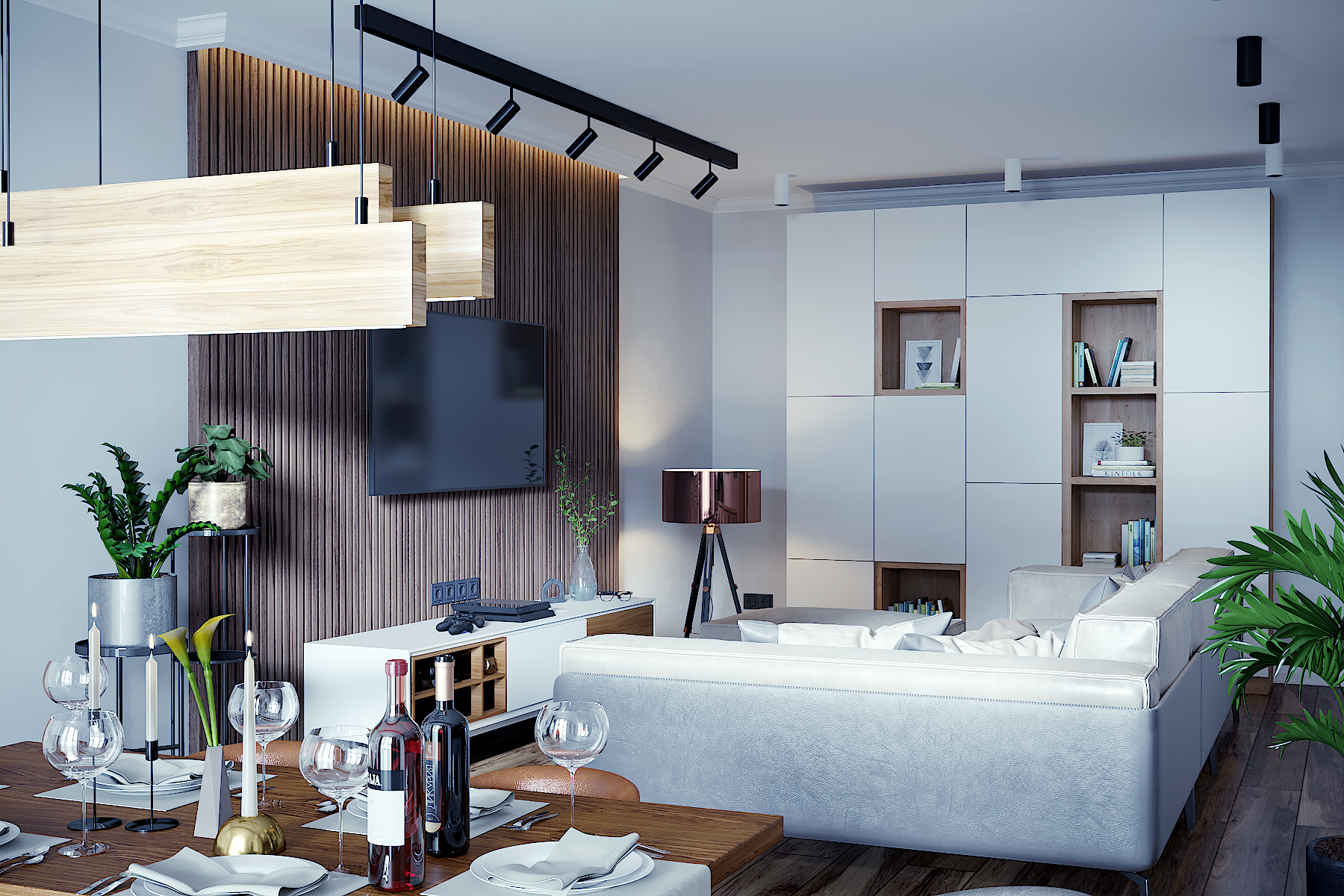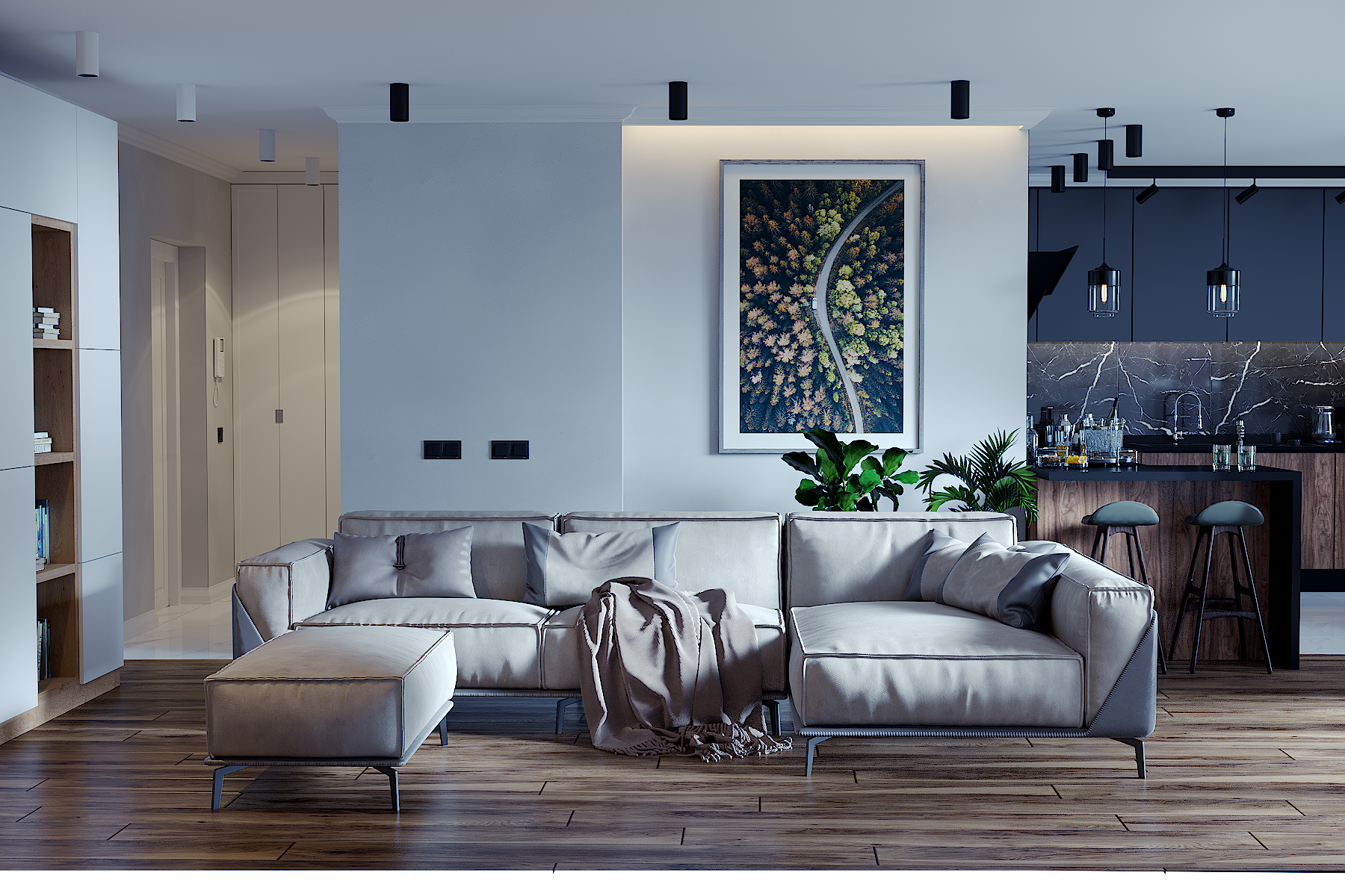 Интерьер гостиной и кухни