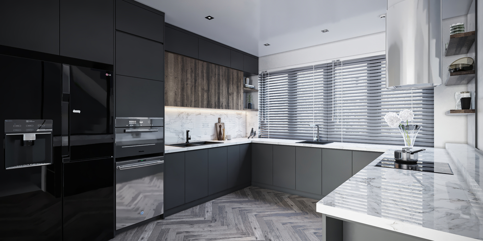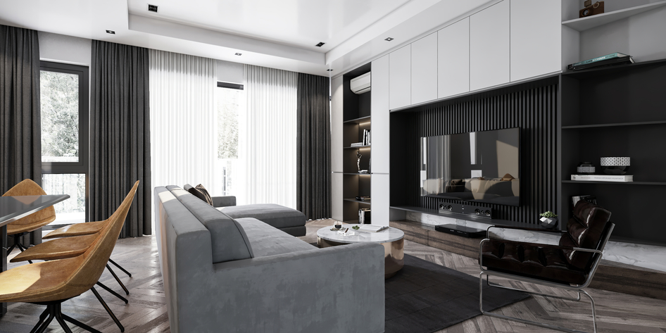 Уютно и дорого всё смотрится. Я, как синяя зануда, всё черное сделала бы сложным серо-синим. Но это просто зануда я. Чёрных здесь вполне оправдан на мой взгляд. Размеры пространства позволяют.