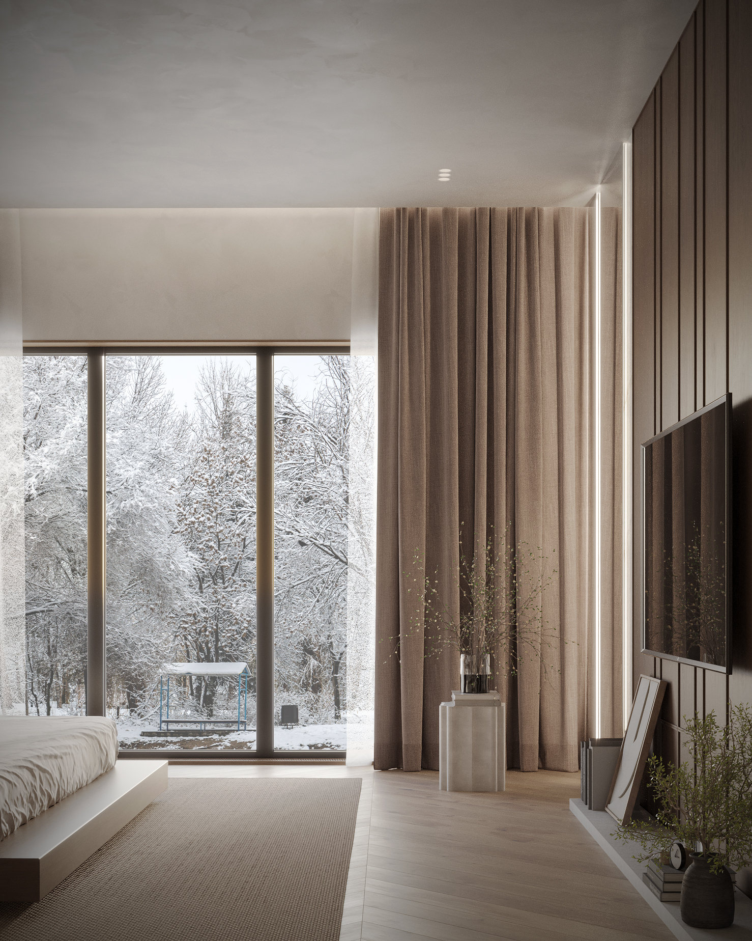 A harmonious blend of sleek modern elements and warm, inviting details — creating a stylish yet comfortable living space.