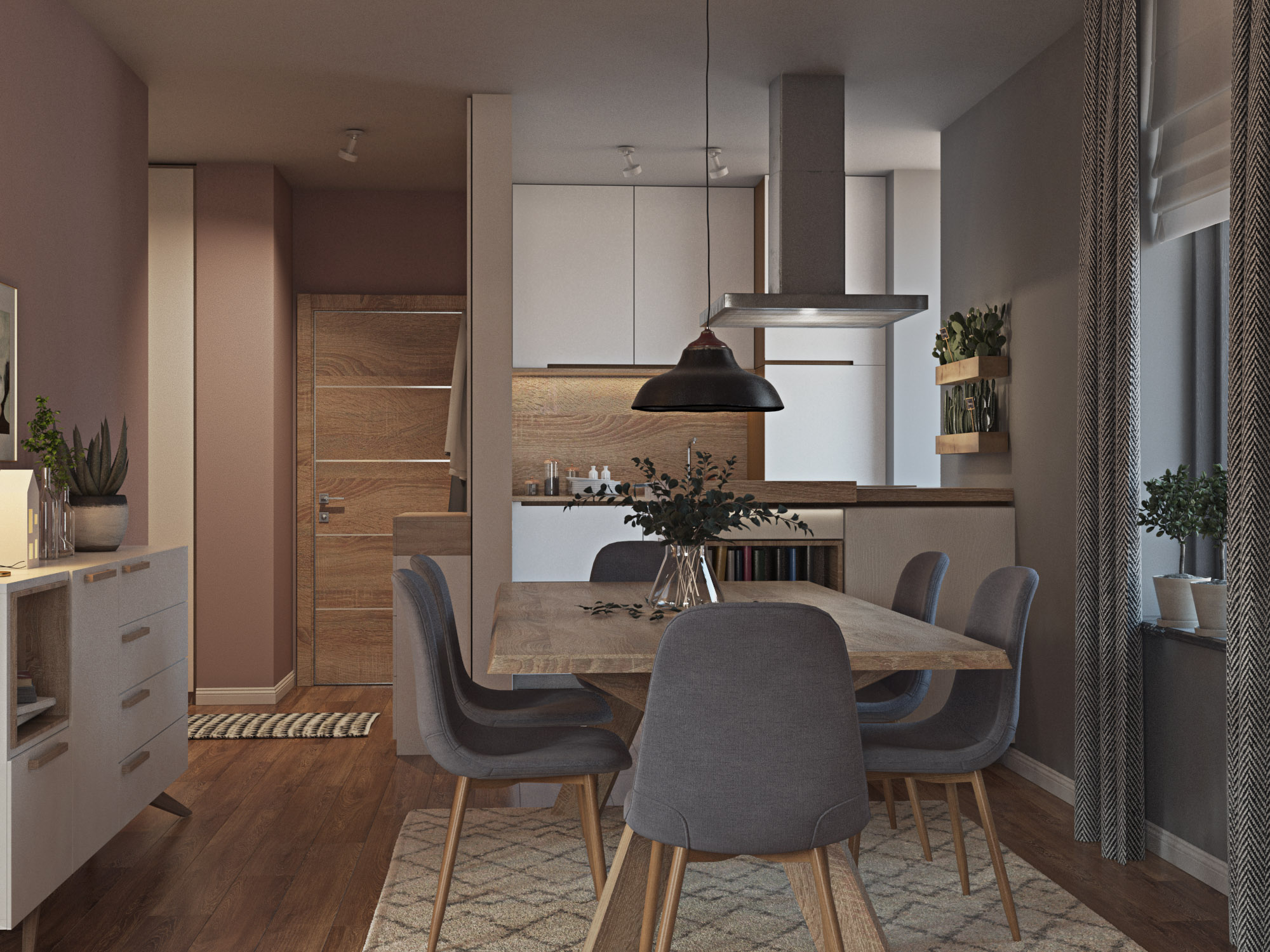 Освещение приятное, похож на приближающийся вечер, но как по мне, так тот светильник над столиком у дивана слишком низко висит, это жутко неудобно. Так же не хватает больше общего освещенные,к вечеру будет слишком темно с таким освещением. И над столом светильник нужен только для светов видимо))