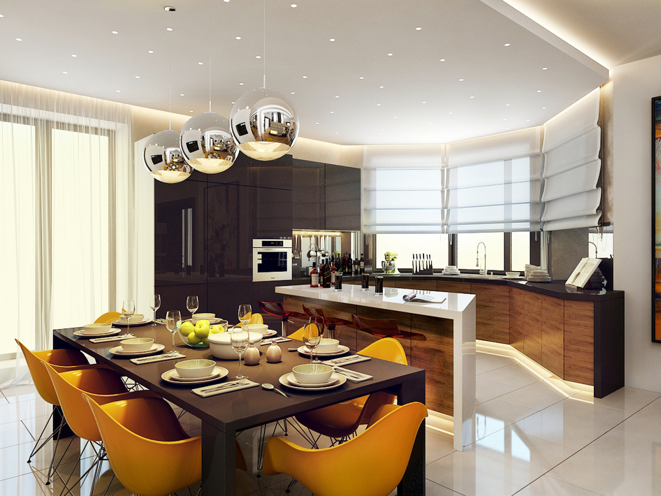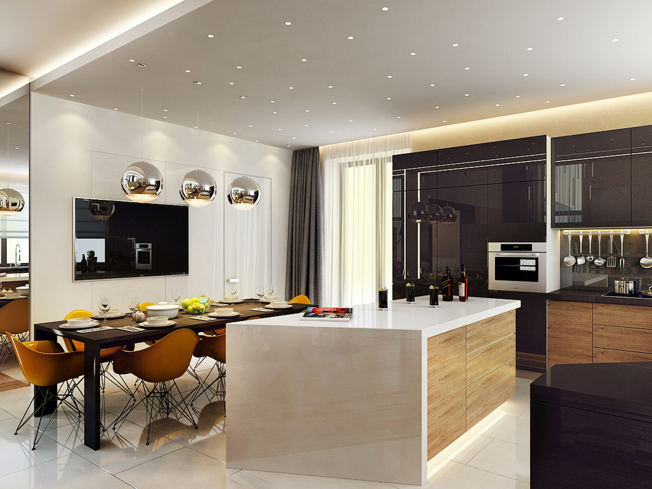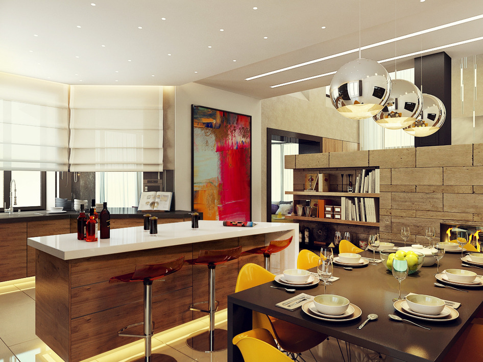Интерьер кухонной зоны в загородном доме