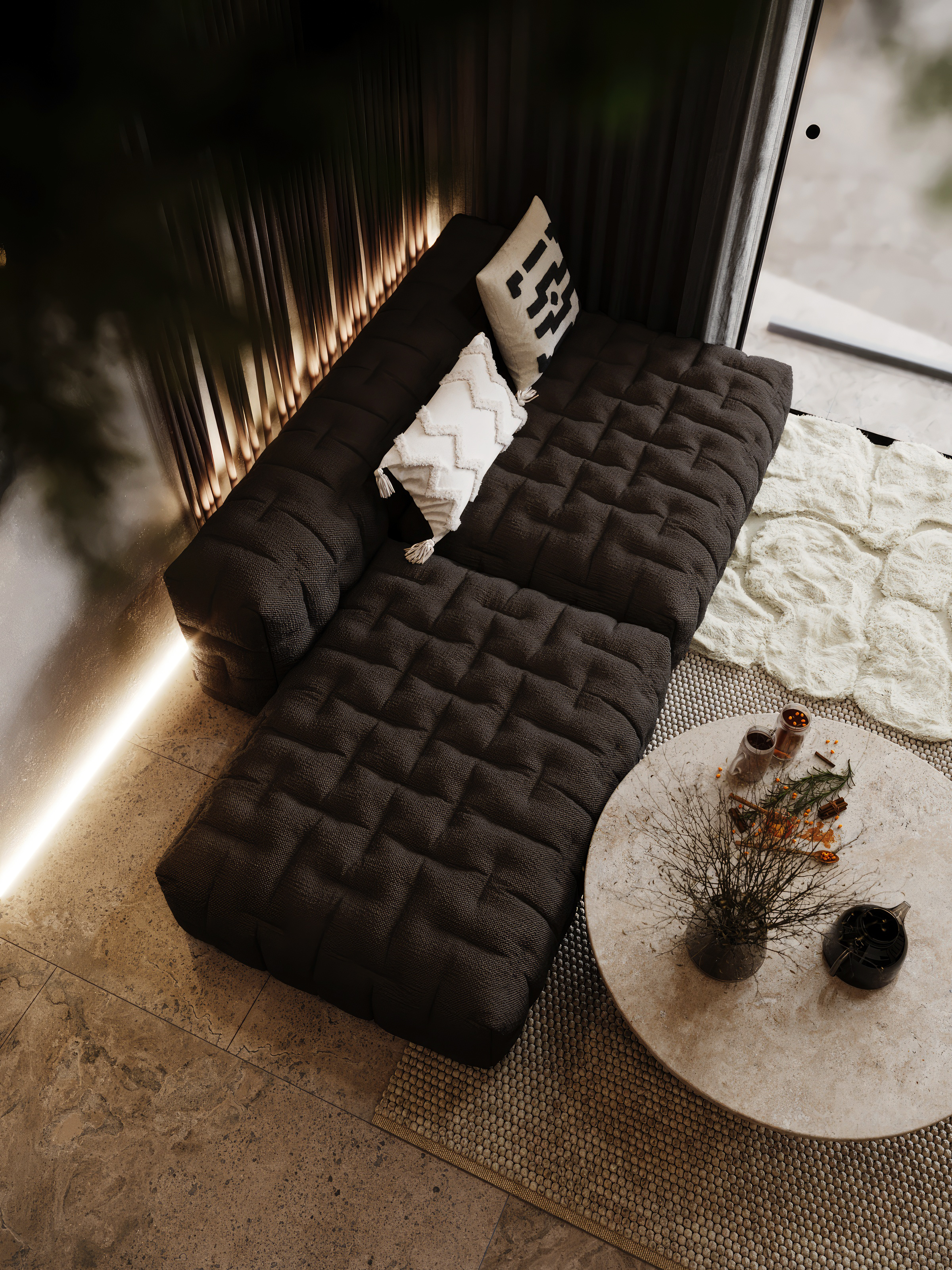 Зона отдыха, включающая в себя душевую и парную (Опережая вопросы^ на потолке в душевой липовый лык, заказчикам предоставлен подвариант и без него, и в другом цветовом решении, но это уже отдельный пост :) )