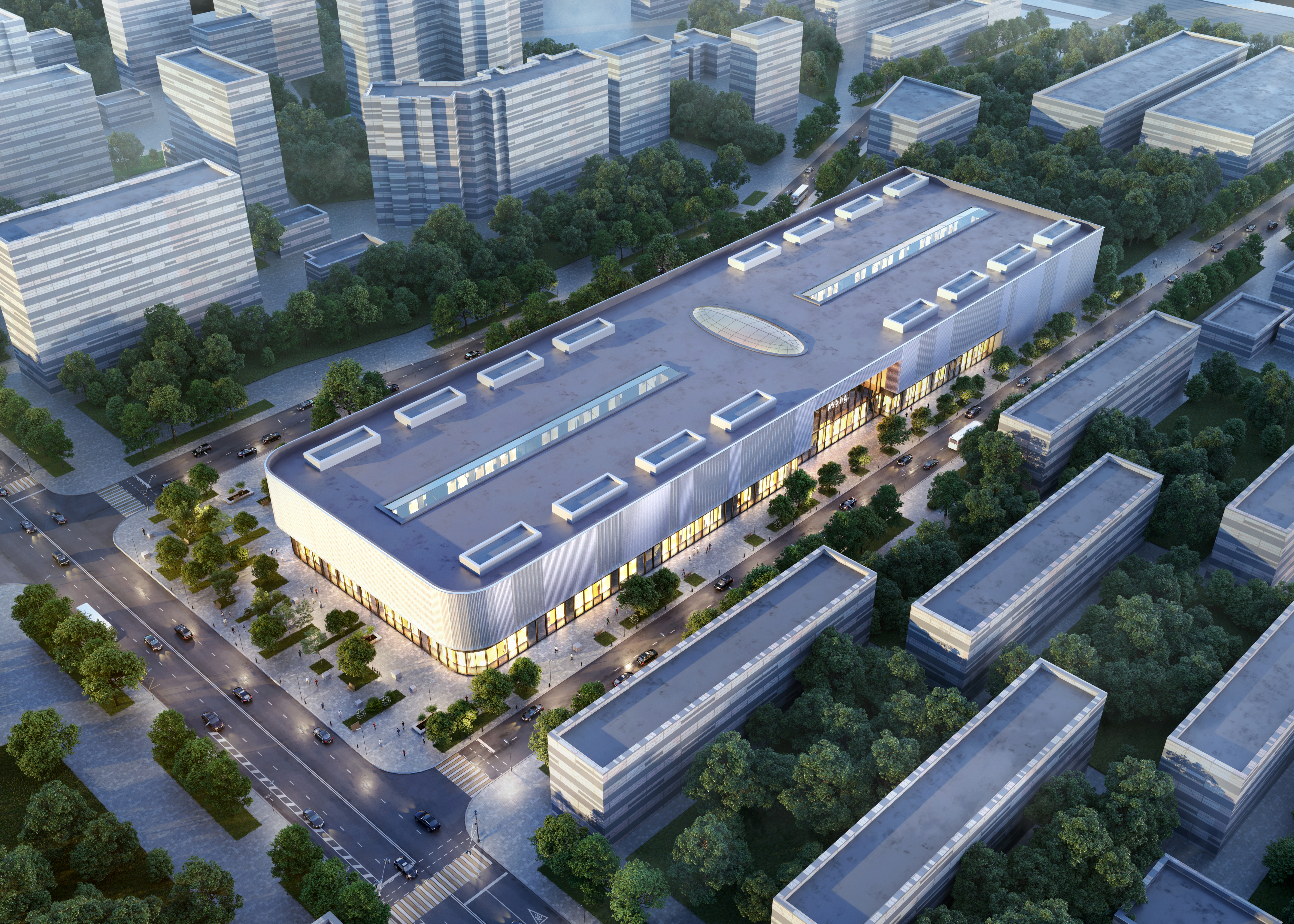 Трава имеет свойство расти вбок , мало того ,даже сквозь бетон , так что это такой себе косяк , стекла отражающие я и не такие видел , в том же Ротердаме на каждом втором доме такие стекла , название из 8 букв впринципе не может быть размещено симметрично в рамках 11 окон, разве что снаружи на креплениях поверх рам - но видимо конструктив этого не позволяет , дорожки замыленные денойзером - согласен , авто - согласен.