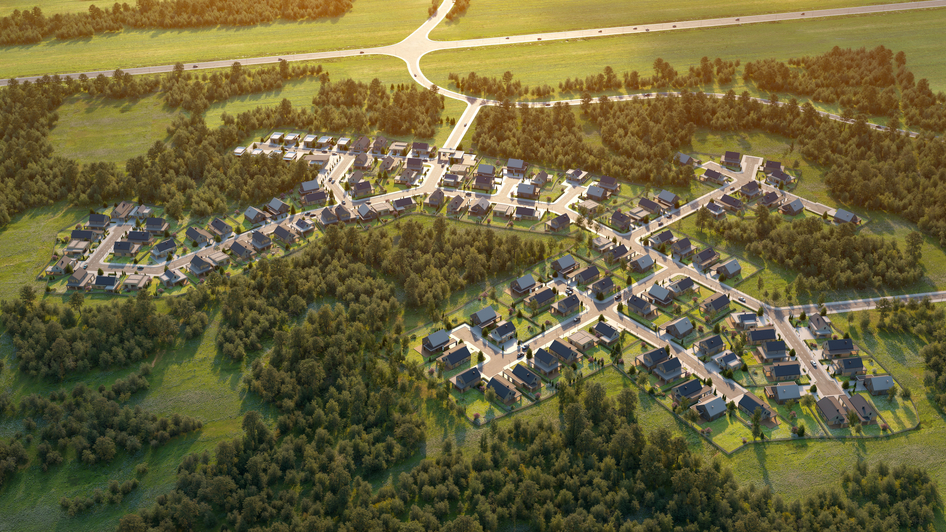 Коммерческая визуализация коттеджного поселка 3DS MAX / CoronaRender / ForestPack / Photoshop Behance: