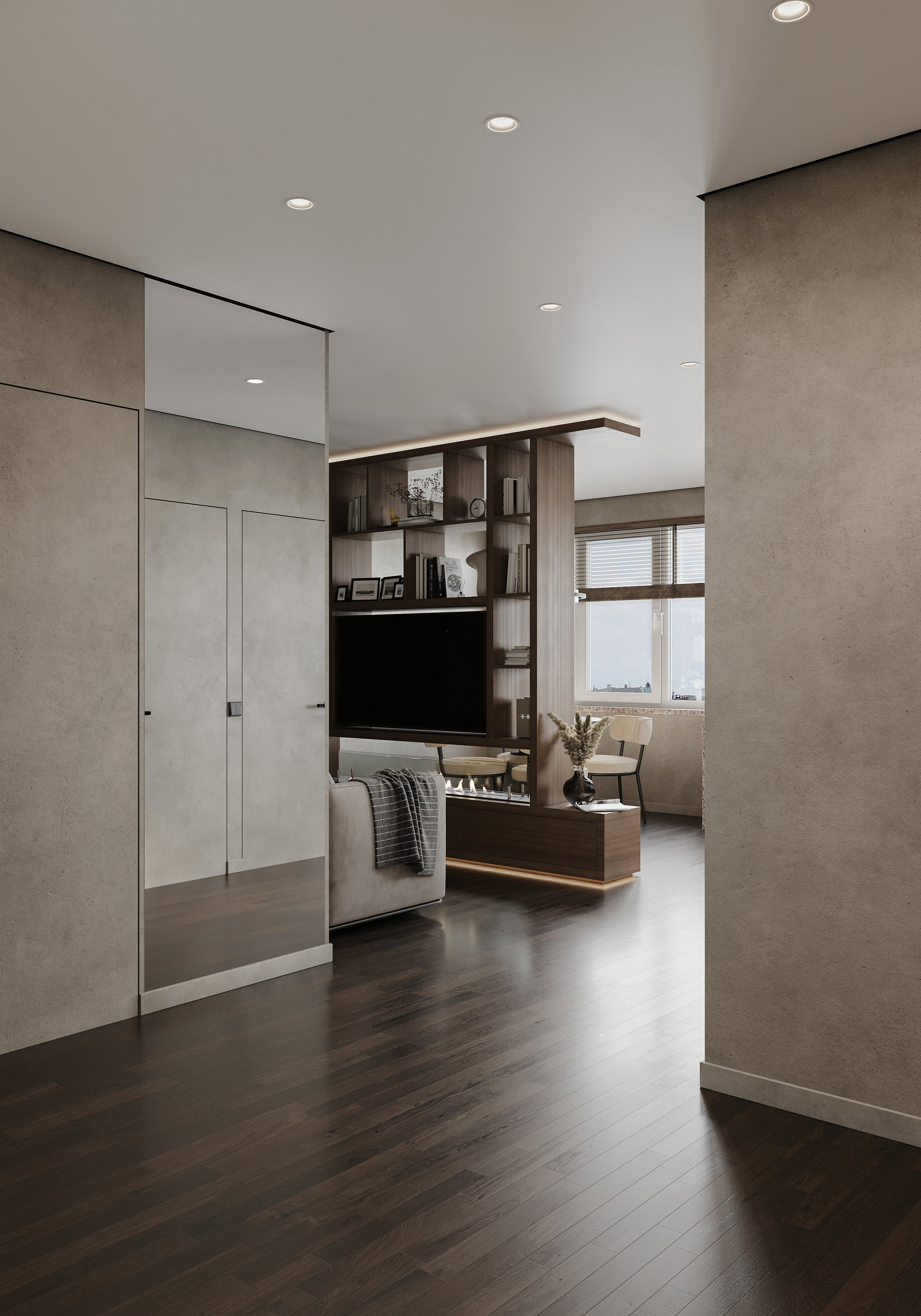 плинтус напольный портит приятную картинку, заморочились с теневым по потолку, плюс скрытые двери, ну по полу тоже надо было теневой, чтобы все в тему уж было