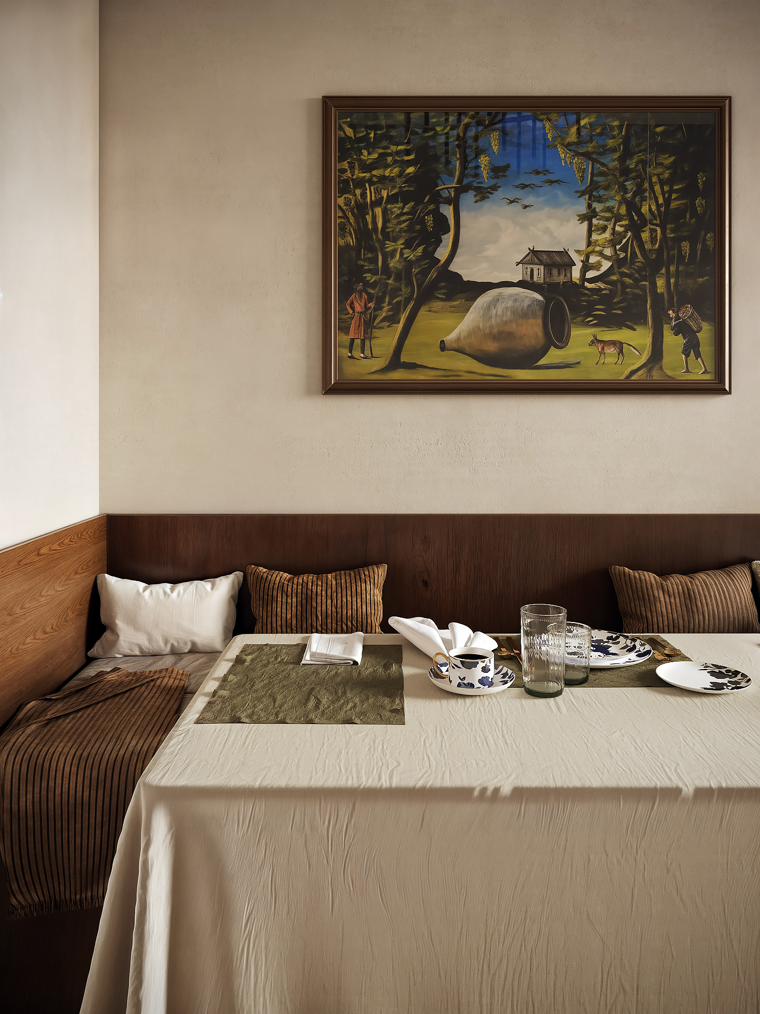 Текстуры натуральных материалов — дерева, керамики, текстиля — передают ощущение времени и жизни.