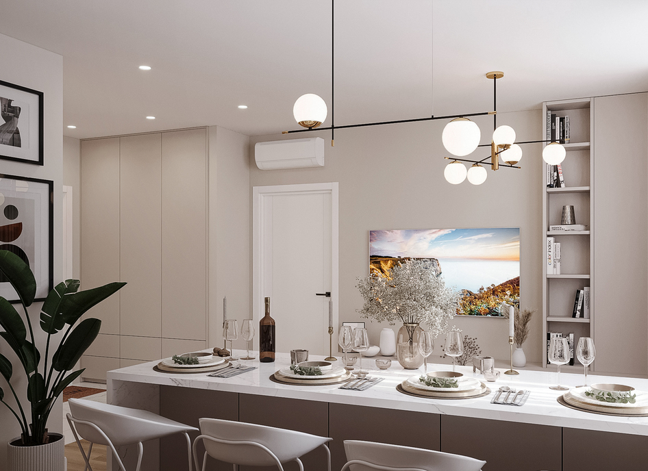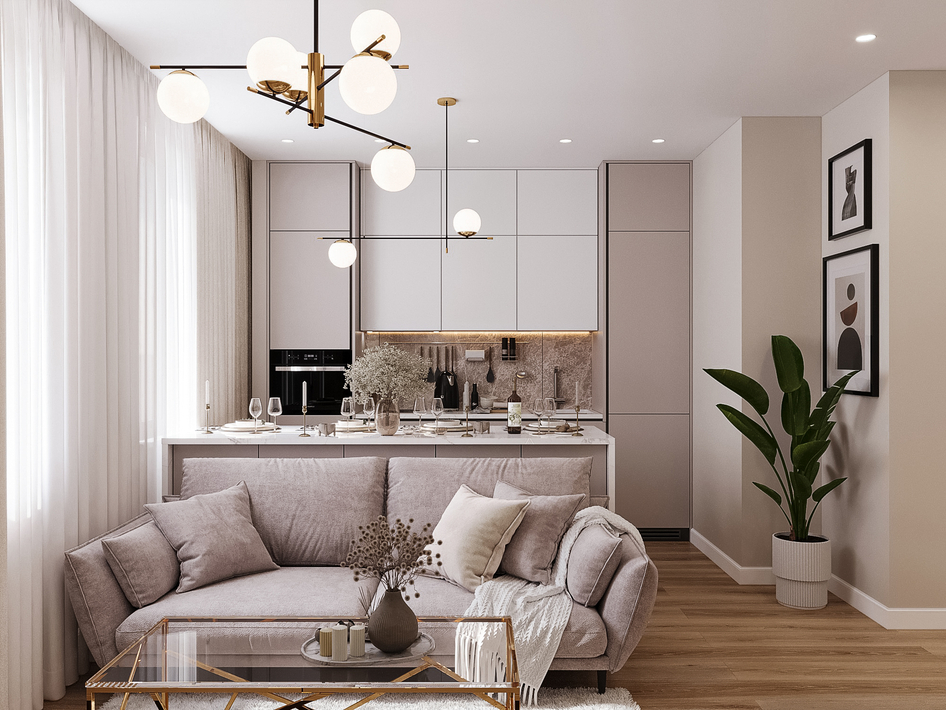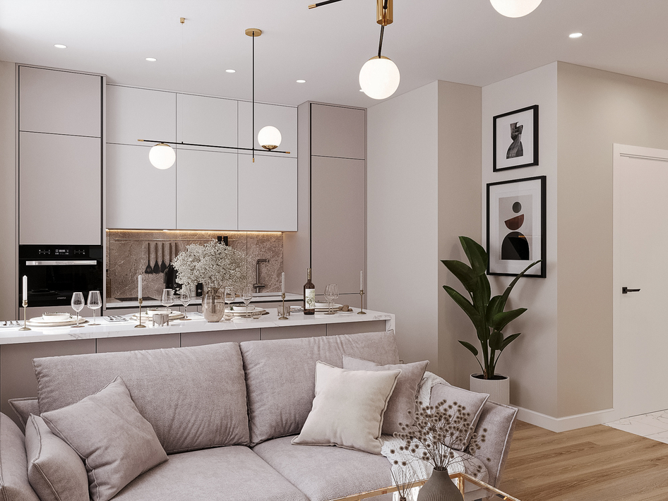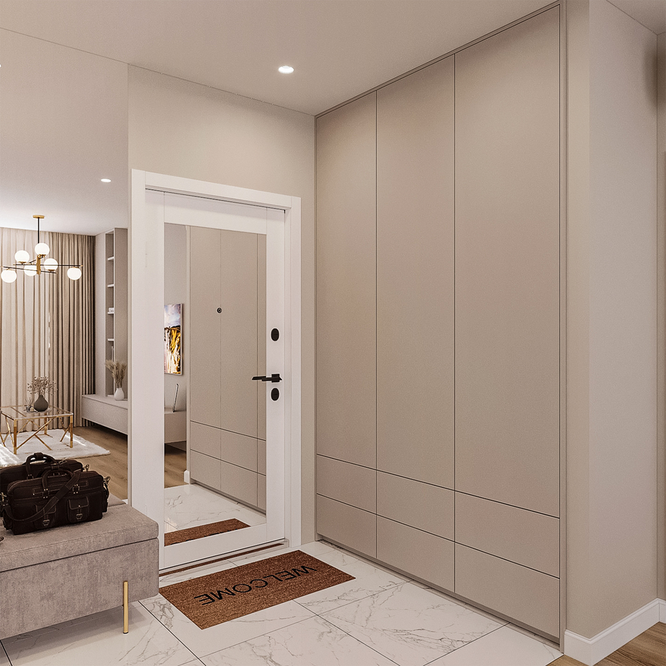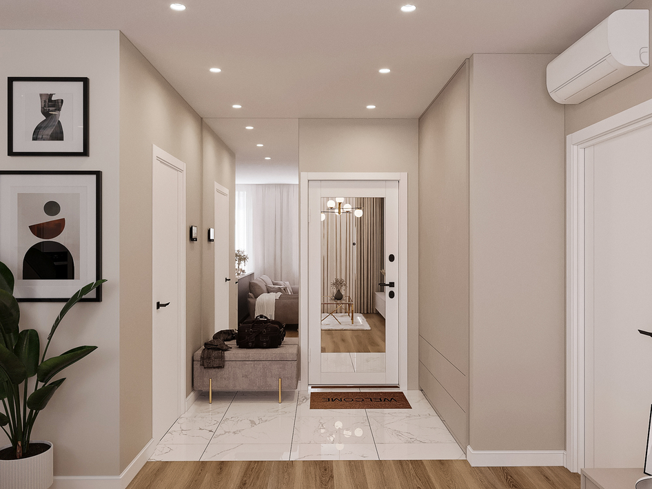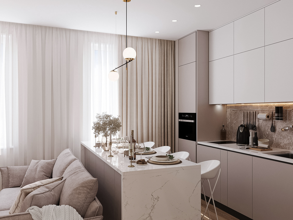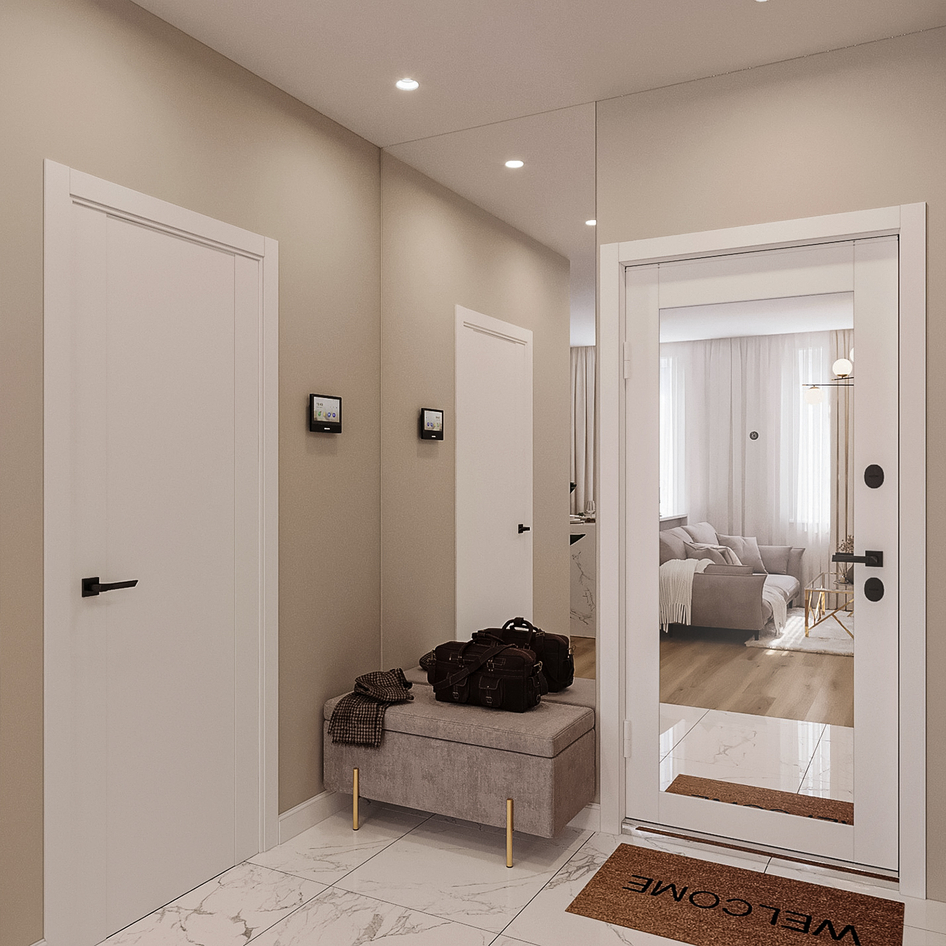 Некоторые кадры из визуализации дизайн-проекта московской квартиры для заказчика, предпочитающего кремовые тона в интерьере
