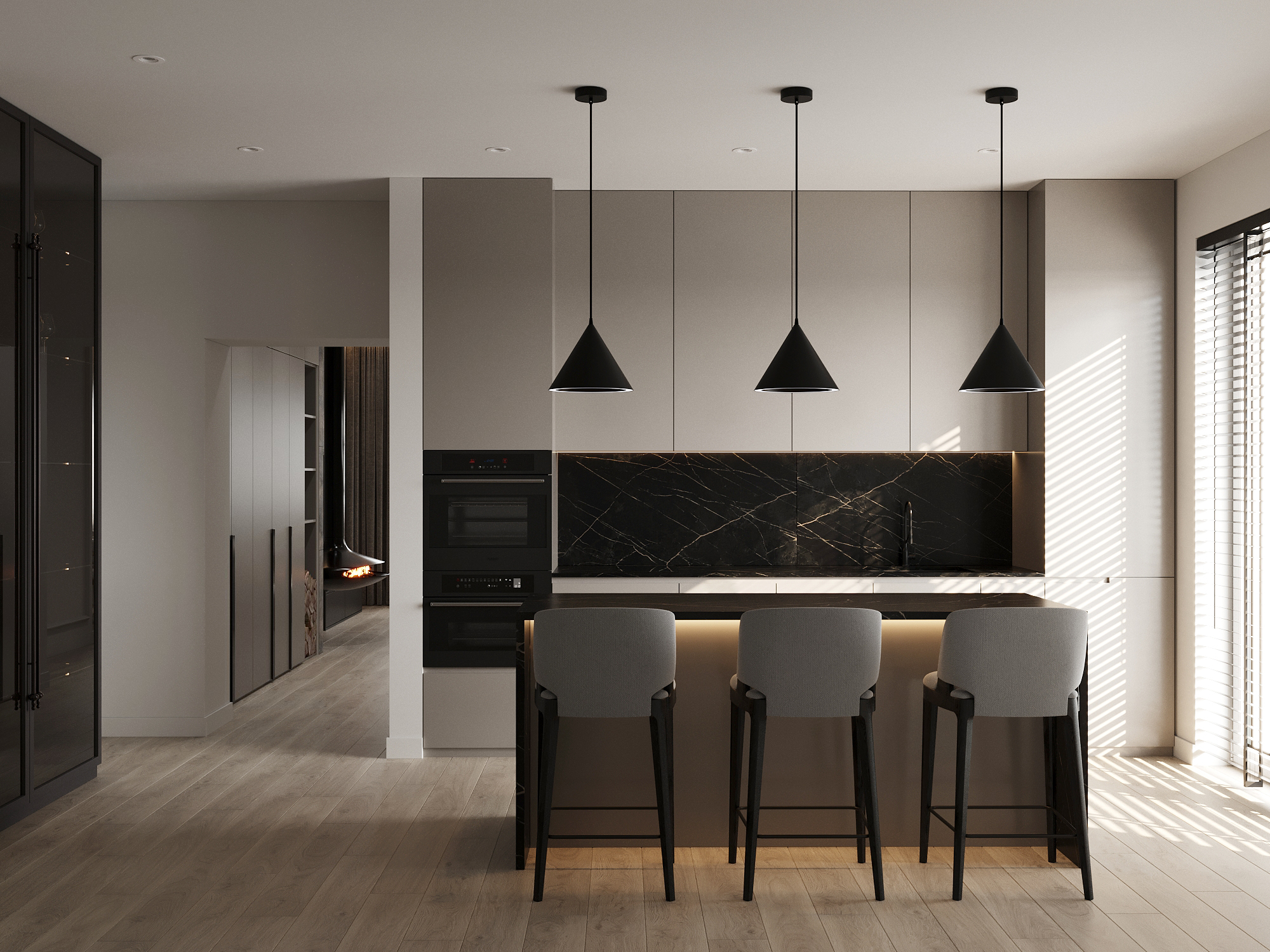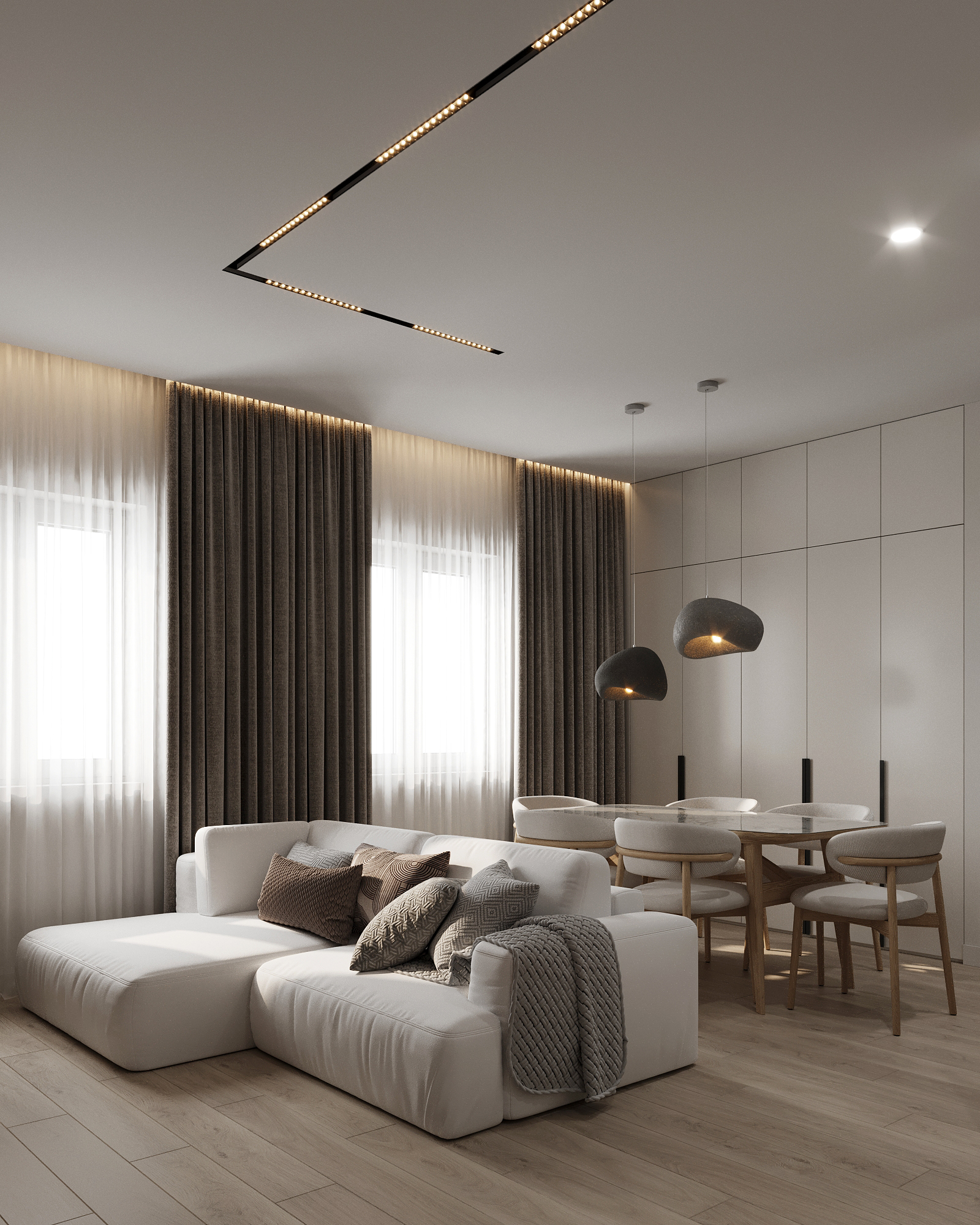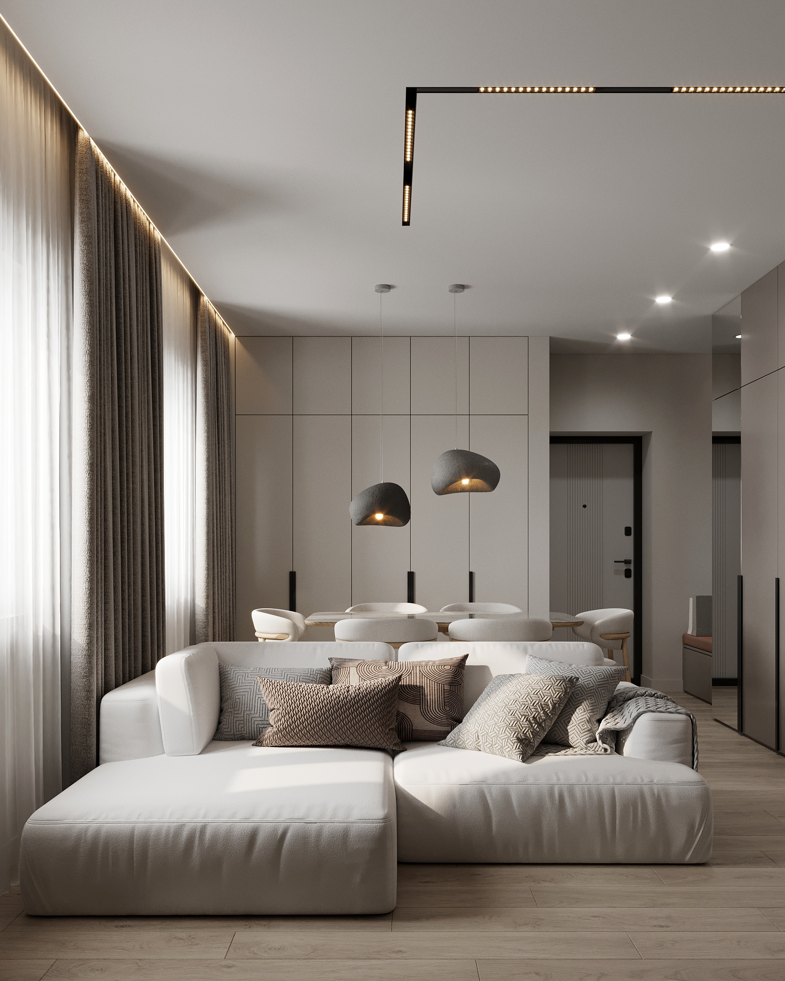 Квартира сделана в теплых тонах.