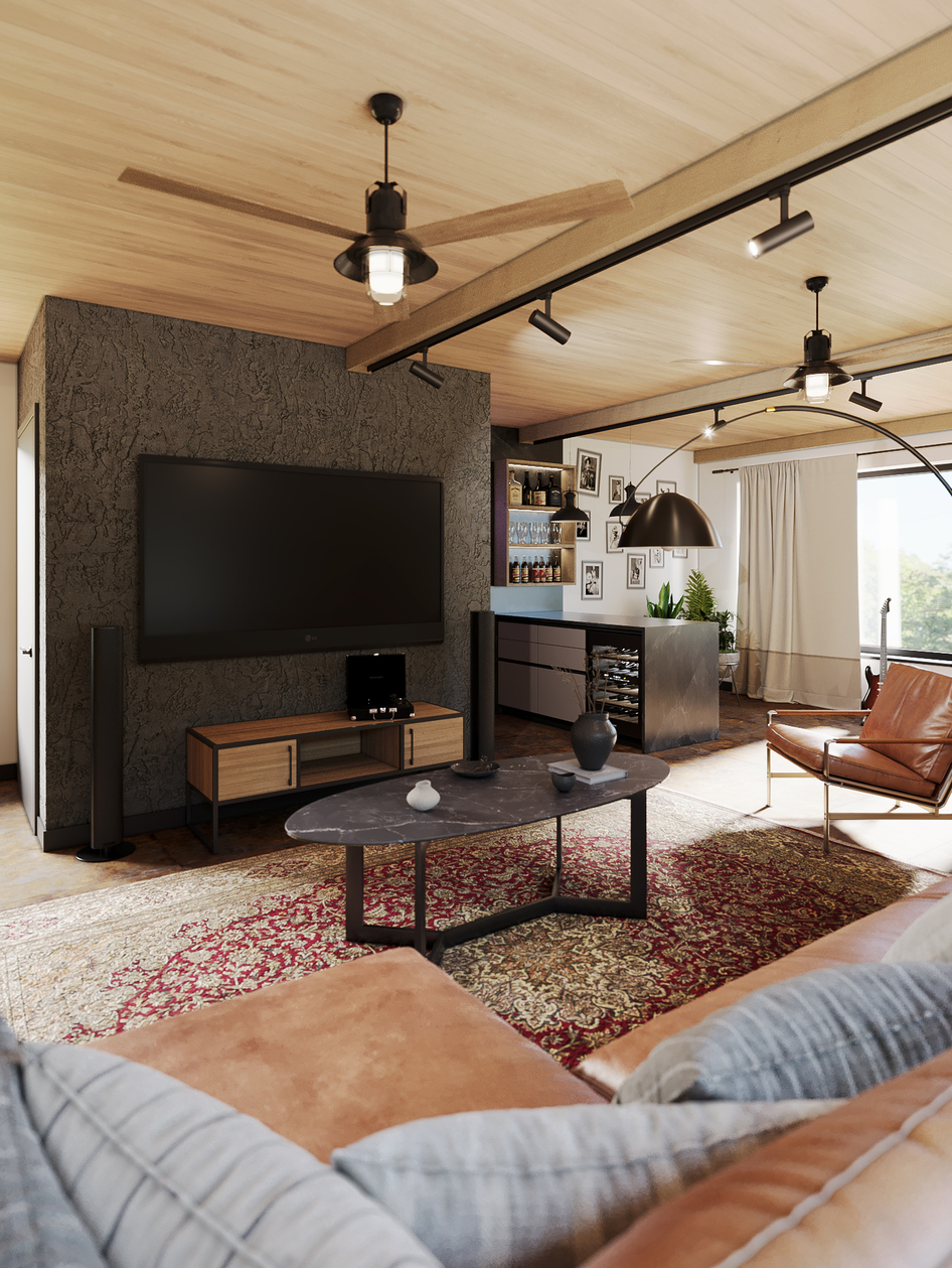 Шикарно, но штукатурка на перегородке за ТВ не находит отклика.