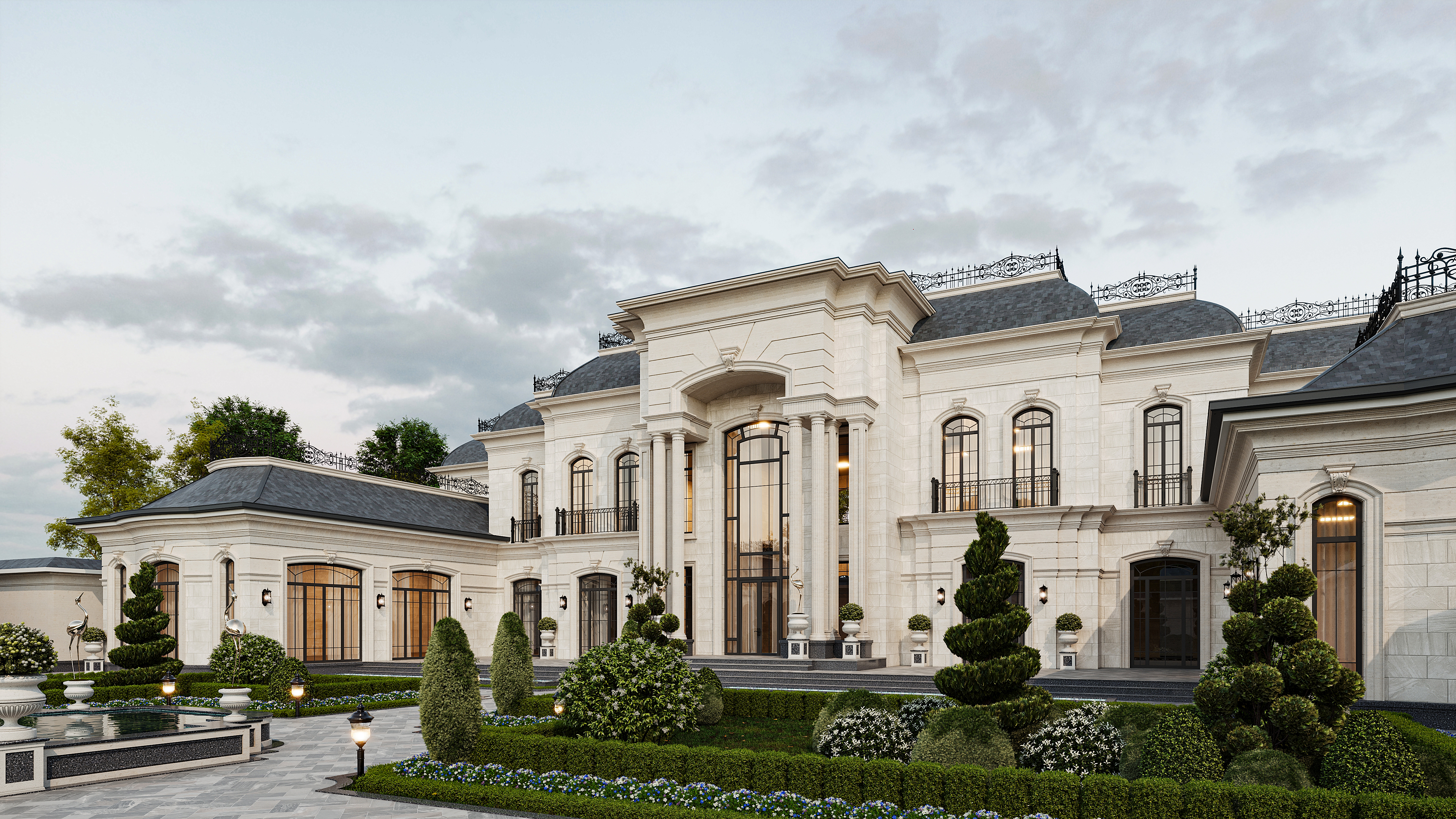 В целом, проект сочетает в себе богатое классическое наследие и современные строительные технологии, создавая образ величественной резиденции.