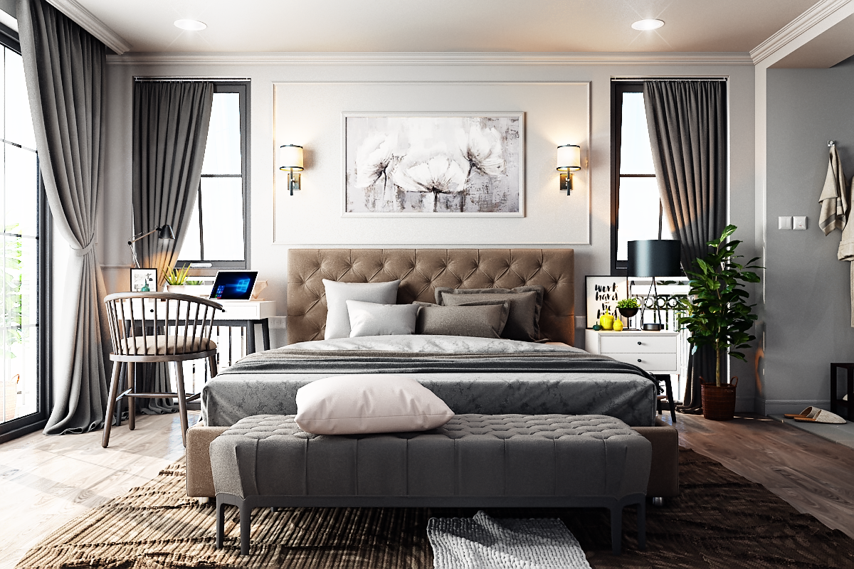 По визу, как по мне, слишком высветлен фон за окном... И по самим окнам тоже вопрос, они странно искревлены на всех картинках. Могу предположить, что окна откидные и как раз находятся в открытом положении, но все же я бы с ними поработала, чтобы не вызывали лишних вопросов.