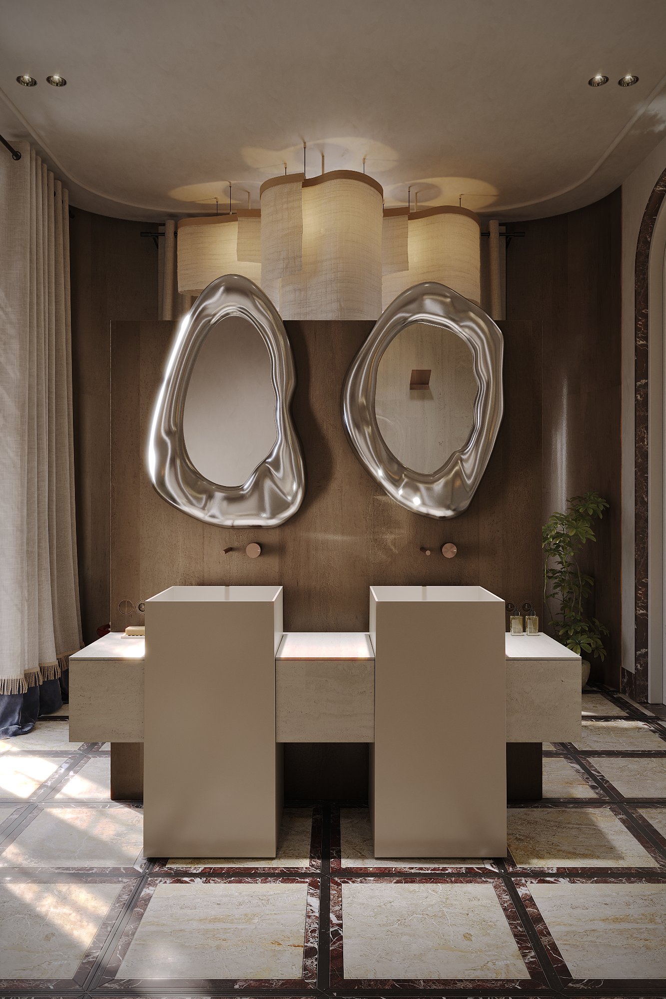 А интереьр интересный. Необычно. Не вижу сушилок и петелек для полотенец, но это мелочи.