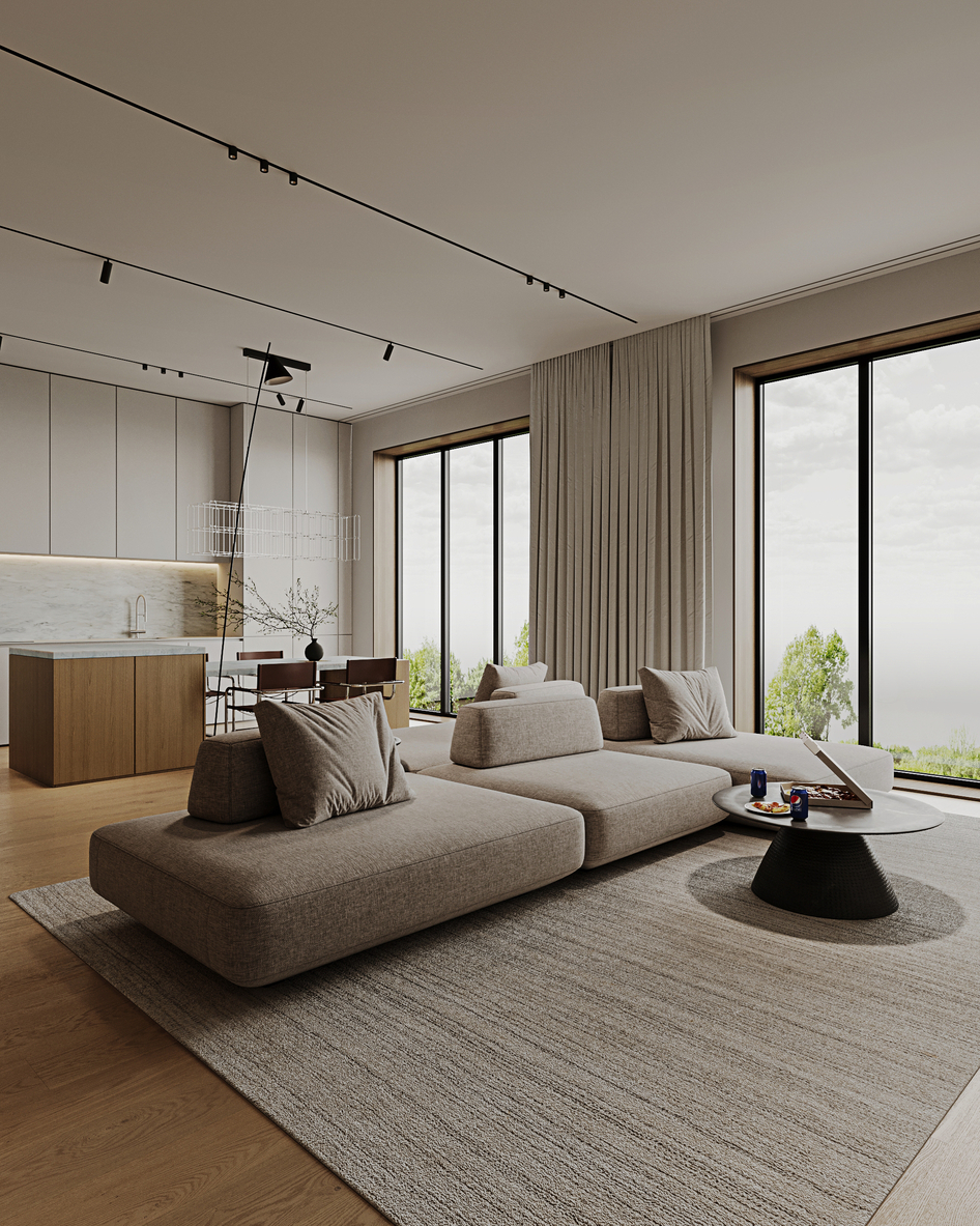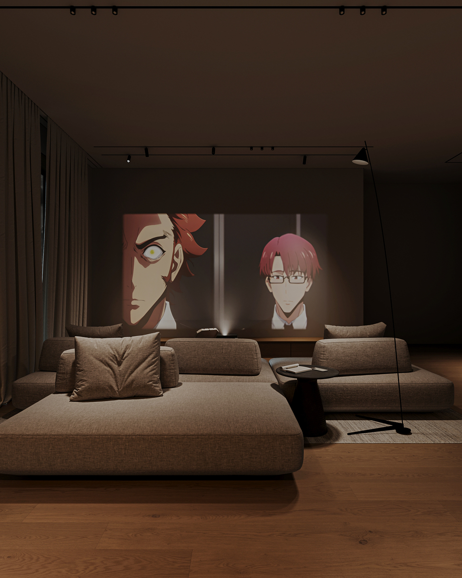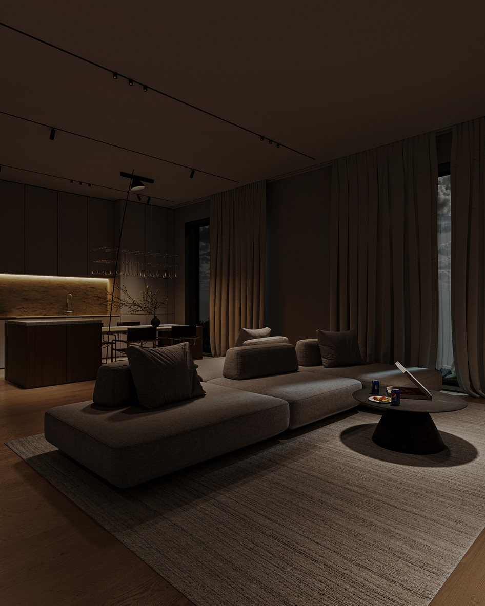 Minimalist Livingroom : Daylight to Nighttime Cinema