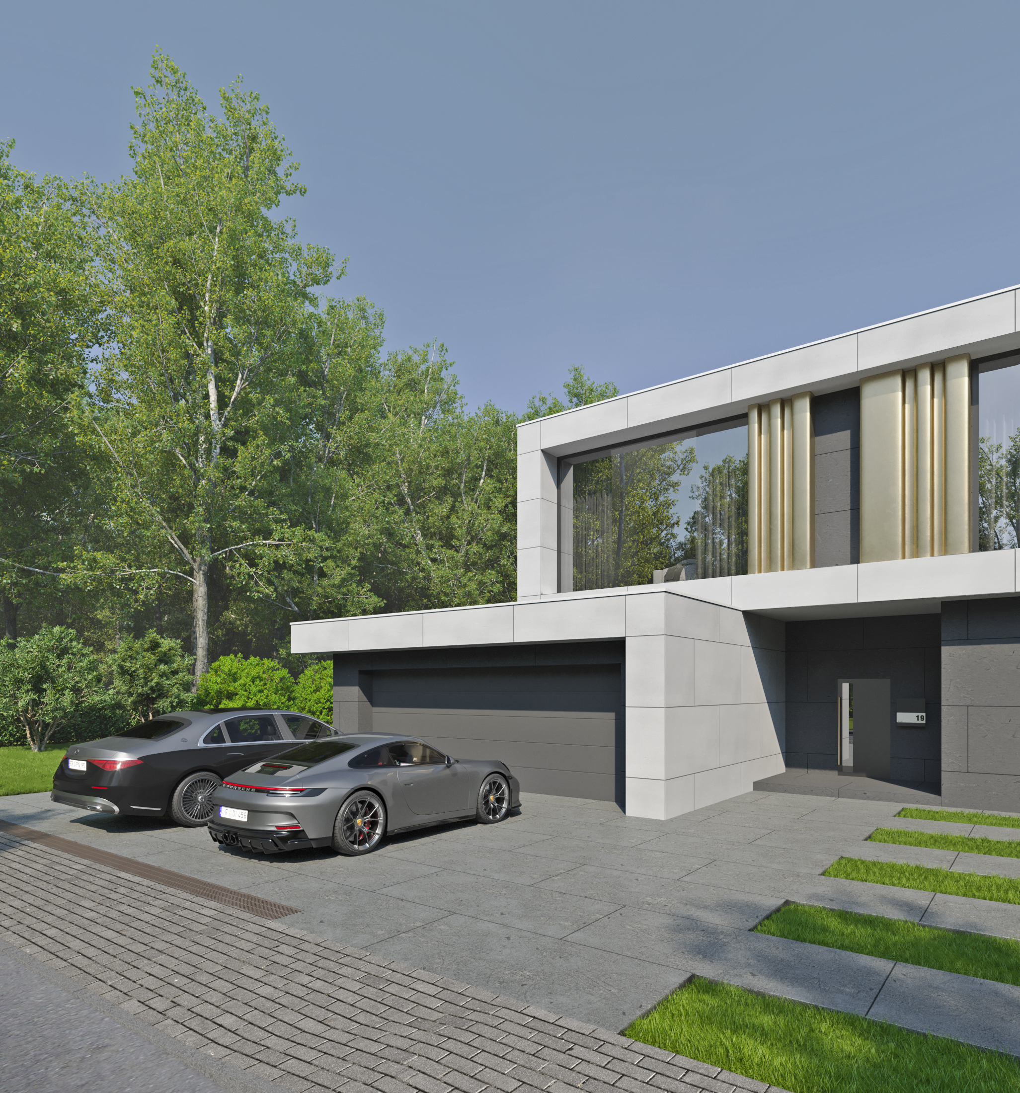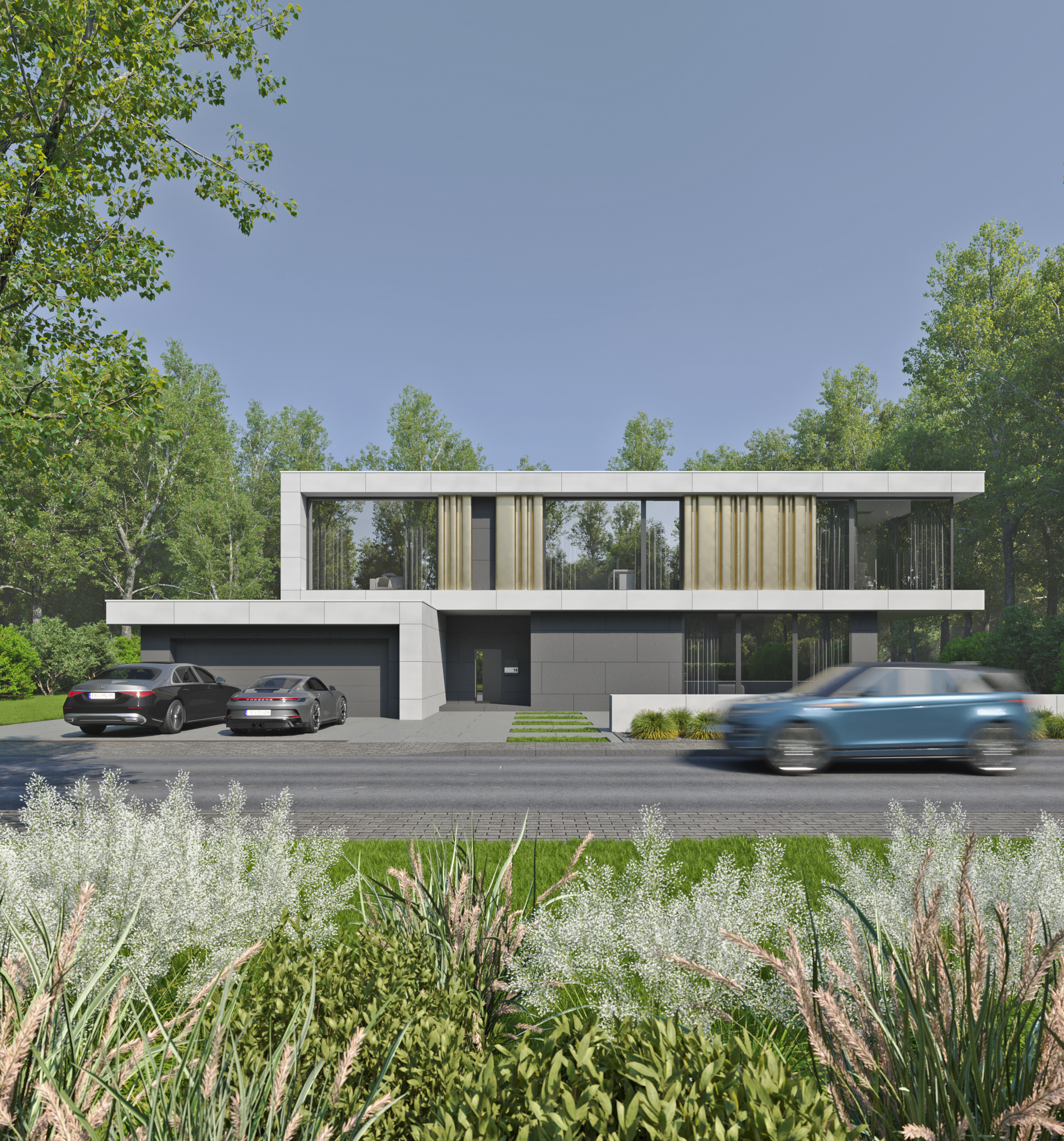 MODERN HOUSE. ARCHITECTURAL PROJECT AND RENDERING
