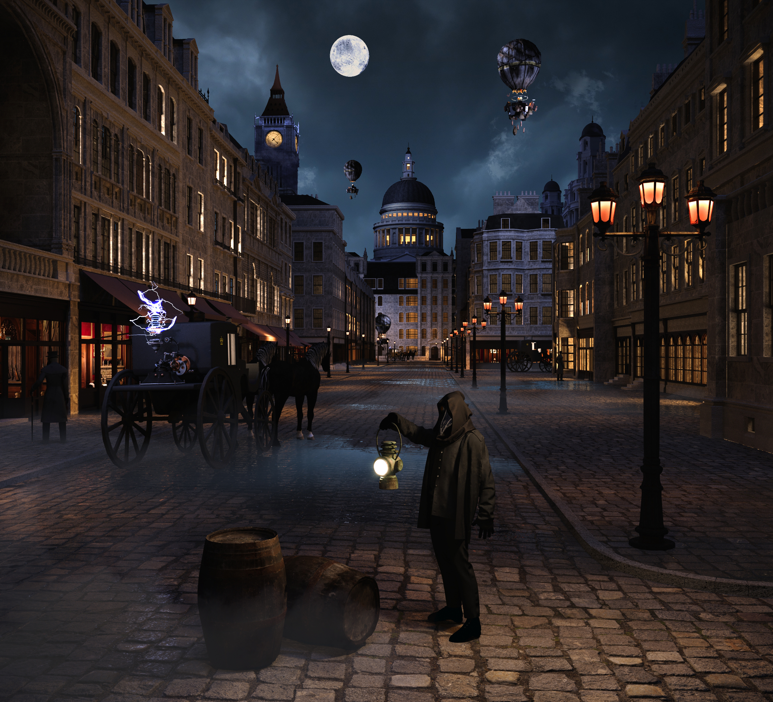 Карантин в стимпанк-городе соблюдают. Чумные доктора ходят по пустым улицам, проверяют доставку на вирусы с помощью новой установки "тесла", а люди передвигаются по городу на воздушных шарах. Гречка, сахар, туалетка, всё в стерильных, замасленых бочках.