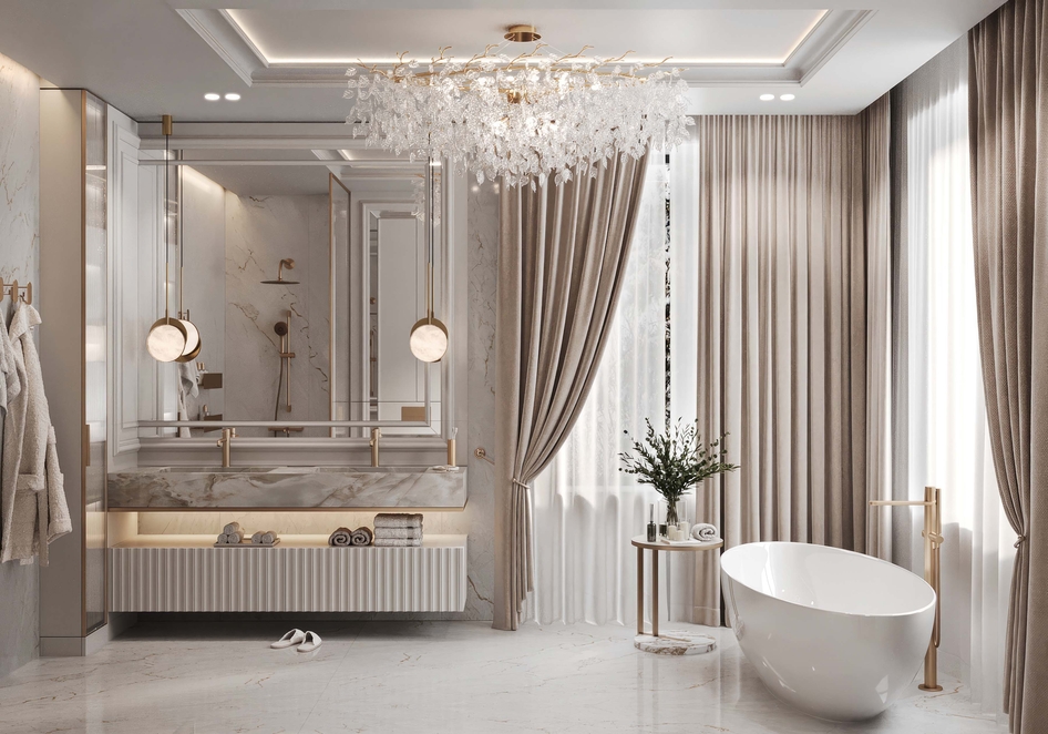 Дизайн: дизайн-студия "Мост" Визуализация: Яшин Николай Используемое ПО: 3D Max, Corona Render, Photoshop Гостиная и кухня с проекта того же дома:
