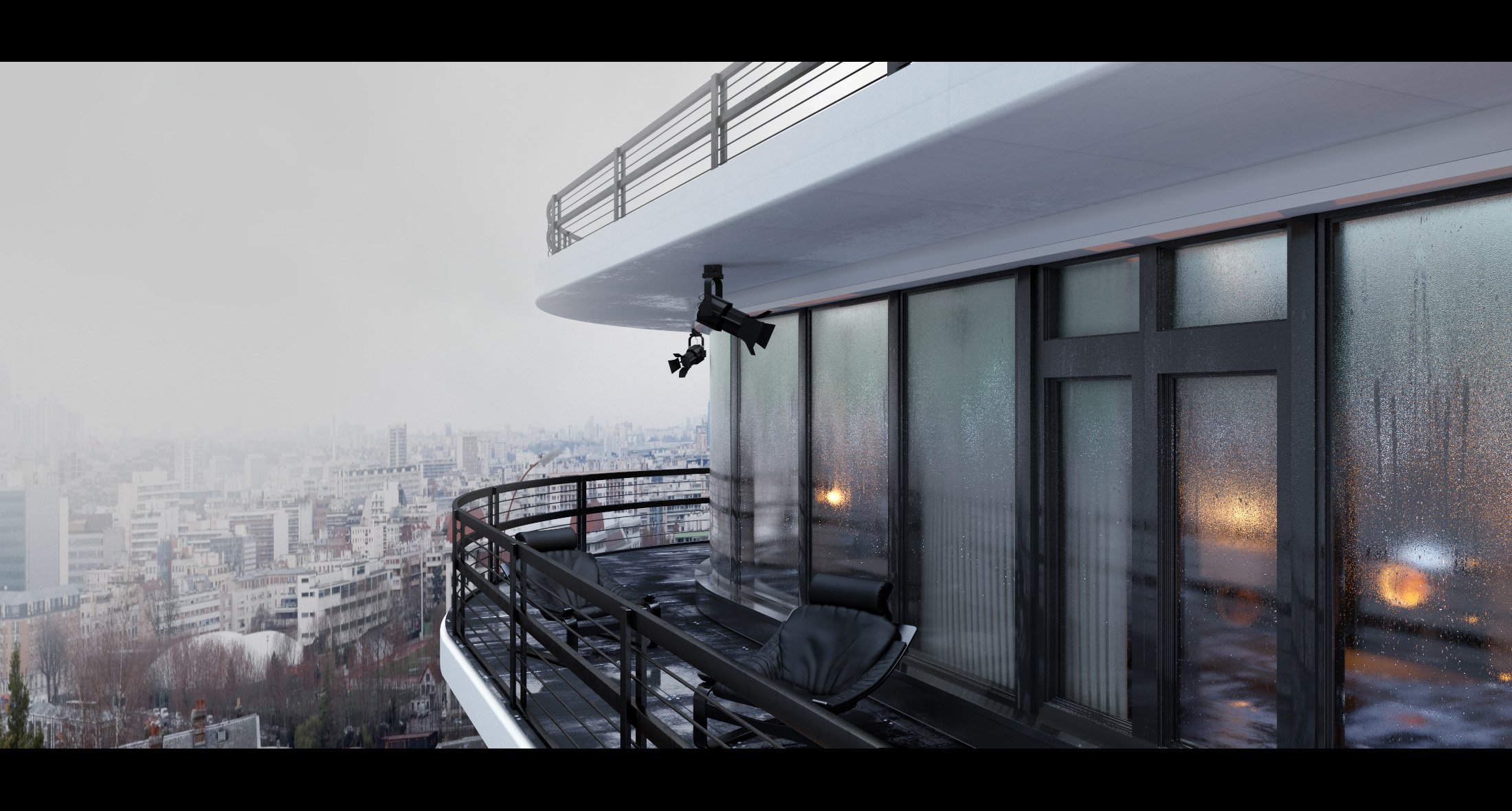 Спасибо, на стеклах не дождь, там конденсат ,я конечно понимаю, что в подобного вида стеклопакетах не может быть такого конденсата, хотел визуально усилить эффект сирости и влаги)