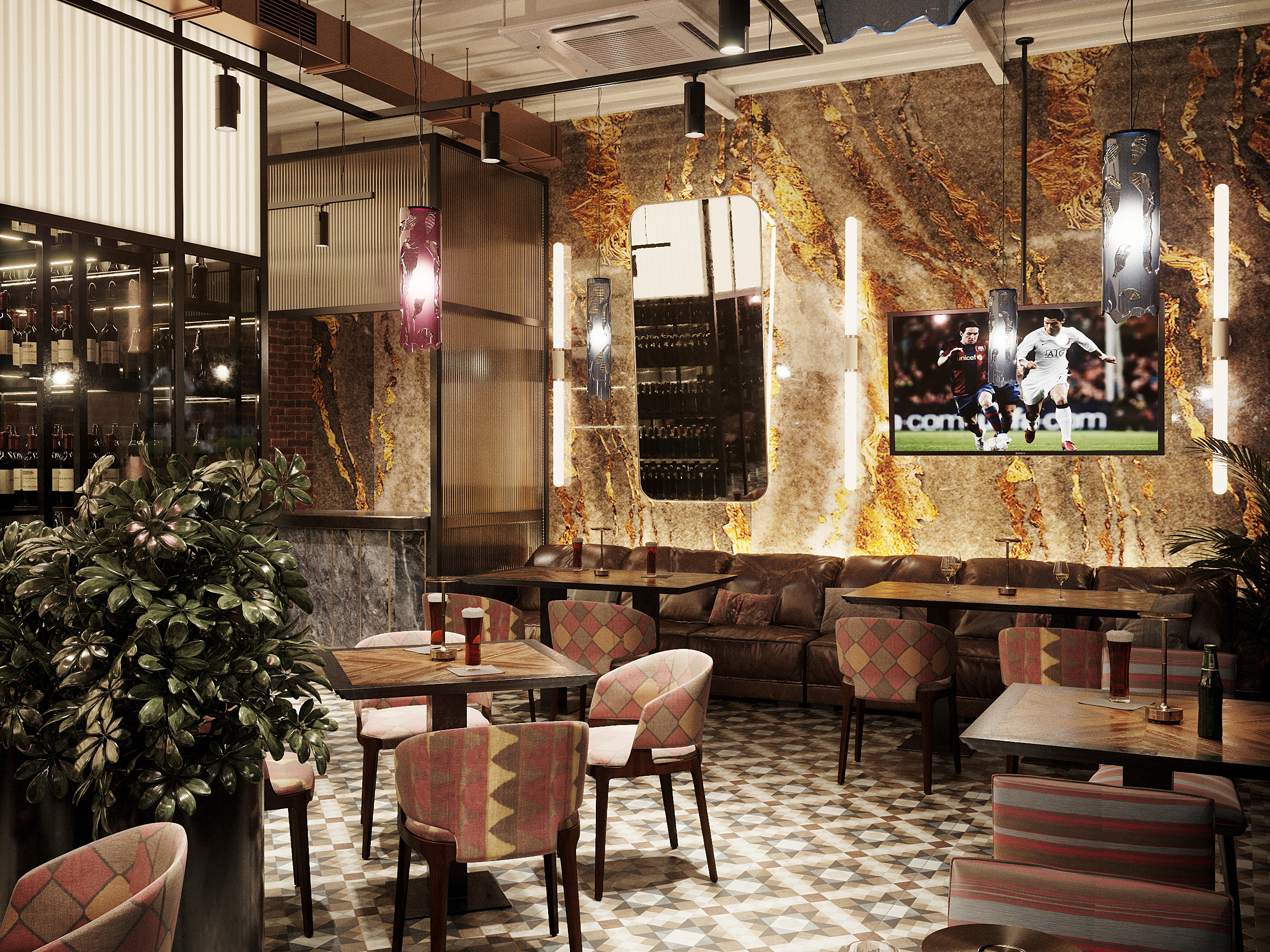 Классная виза, дизайн, но ресторан получился интереснее, приглушённый в пестроте, особенно сравнил картинку номер 13 по гуглу. Это не критика по работе. Финал не всегда схож с оригиналом. По причине того, что 70 процентов материала не найти при реализации и выкручиваешься с тем, что есть. А работа класс как и прочие работы.