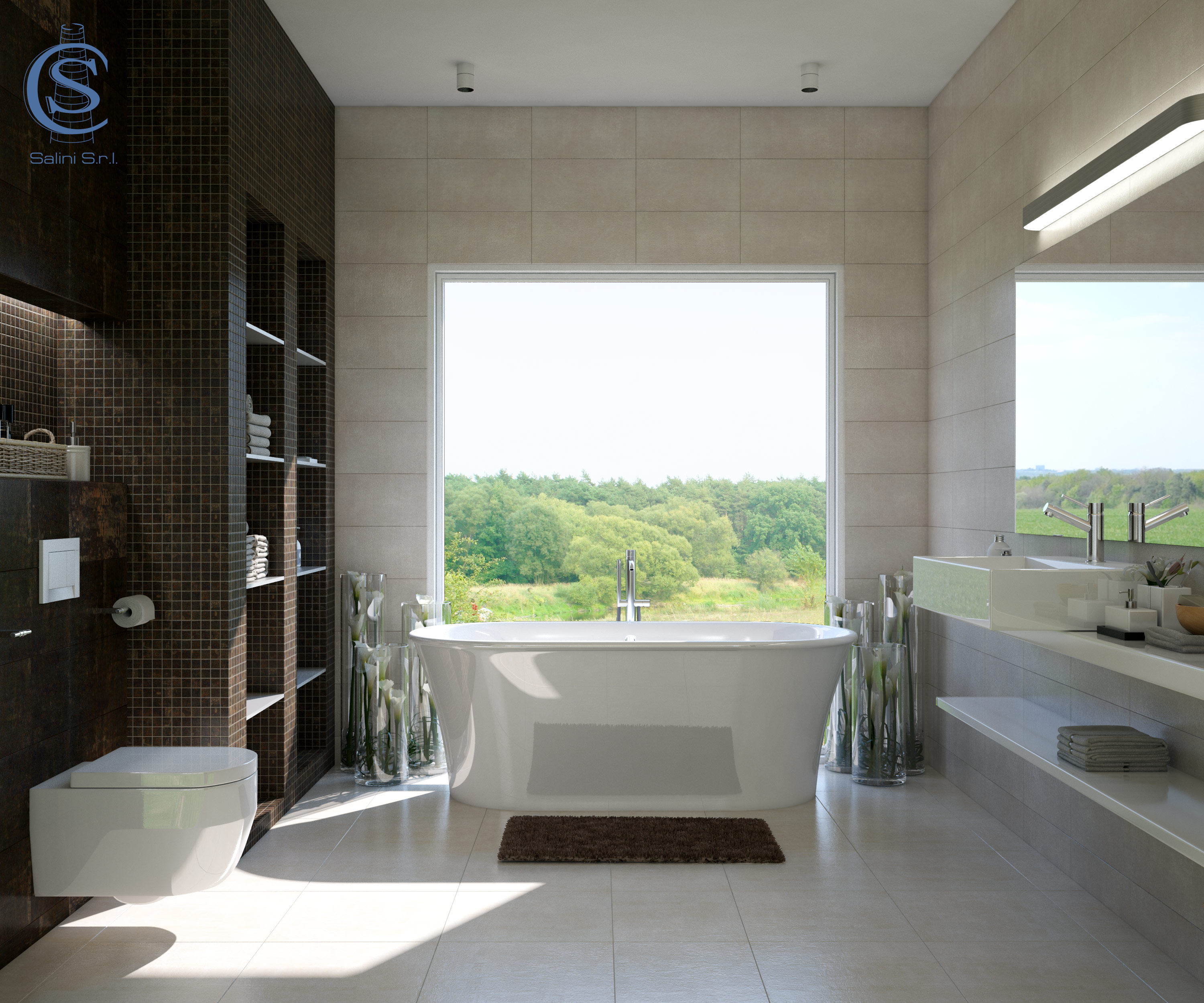 Ванная стоит в коридоре? Понятно что стекло в окне создает некоторые сложности при рендере, но без него как то совсем не айс, к тому же возникают сомнения по поводу его размеров, я бы добавил расшивку.