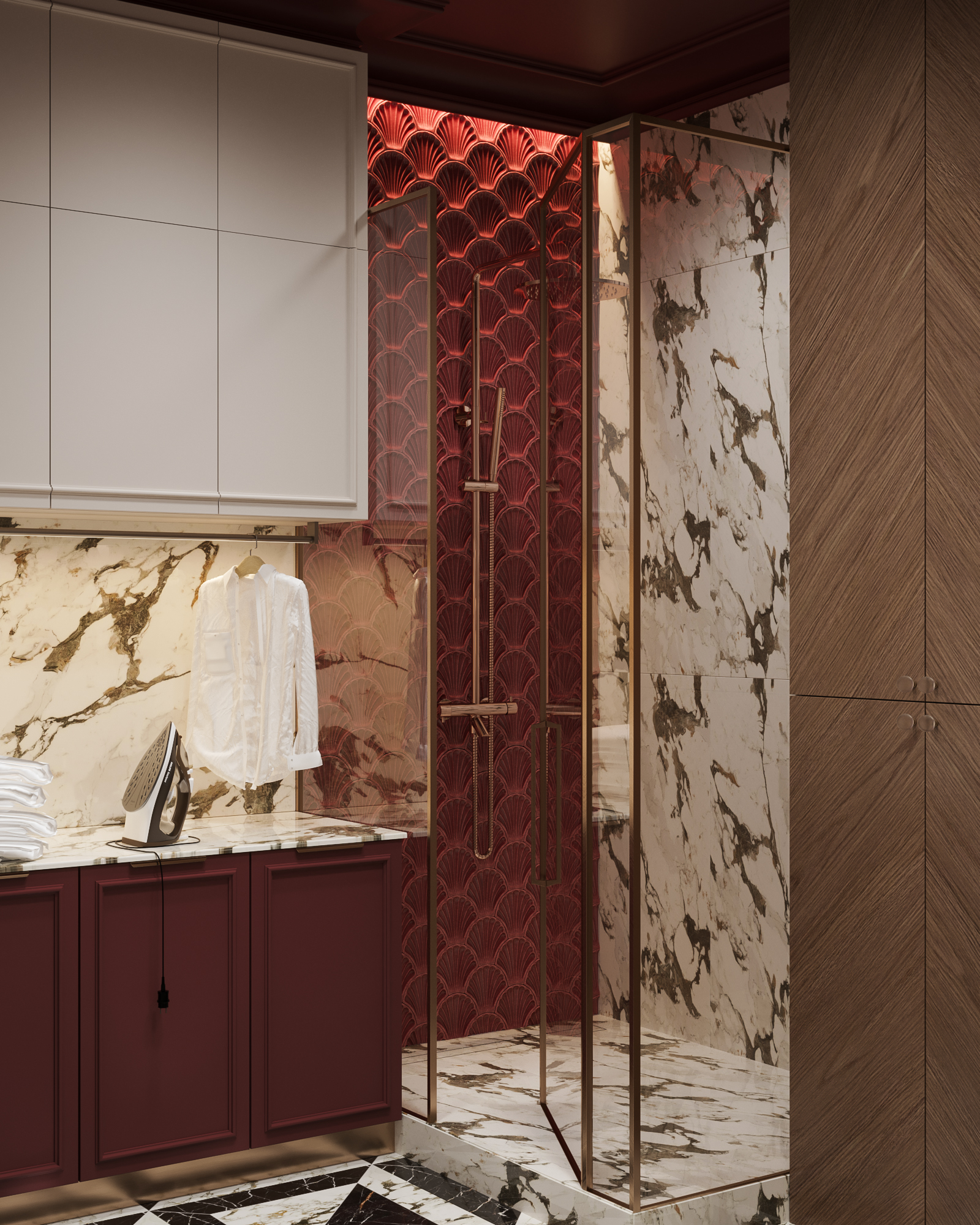 Только не понял что утюг в душевой делает?