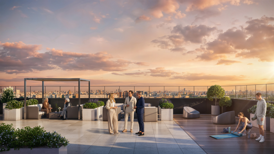 Откройте для себя идеальное место для отдыха и встреч — терраса ЖК Символ с потрясающим видом на город. Приятное освещение, современные удобства и атмосфера уюта делают это место идеальным для работы, отдыха и общения с близкими