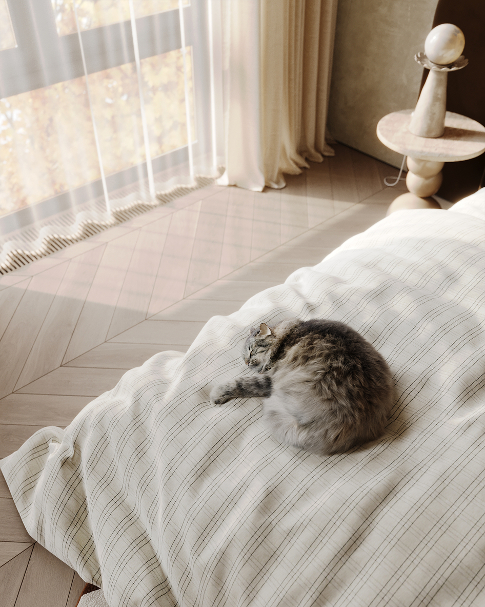 Случайно нашла на просторах pinterest коллаж и вдохновилась на создание такой спальни с осенним видом из окна. Коллаж (Референс):