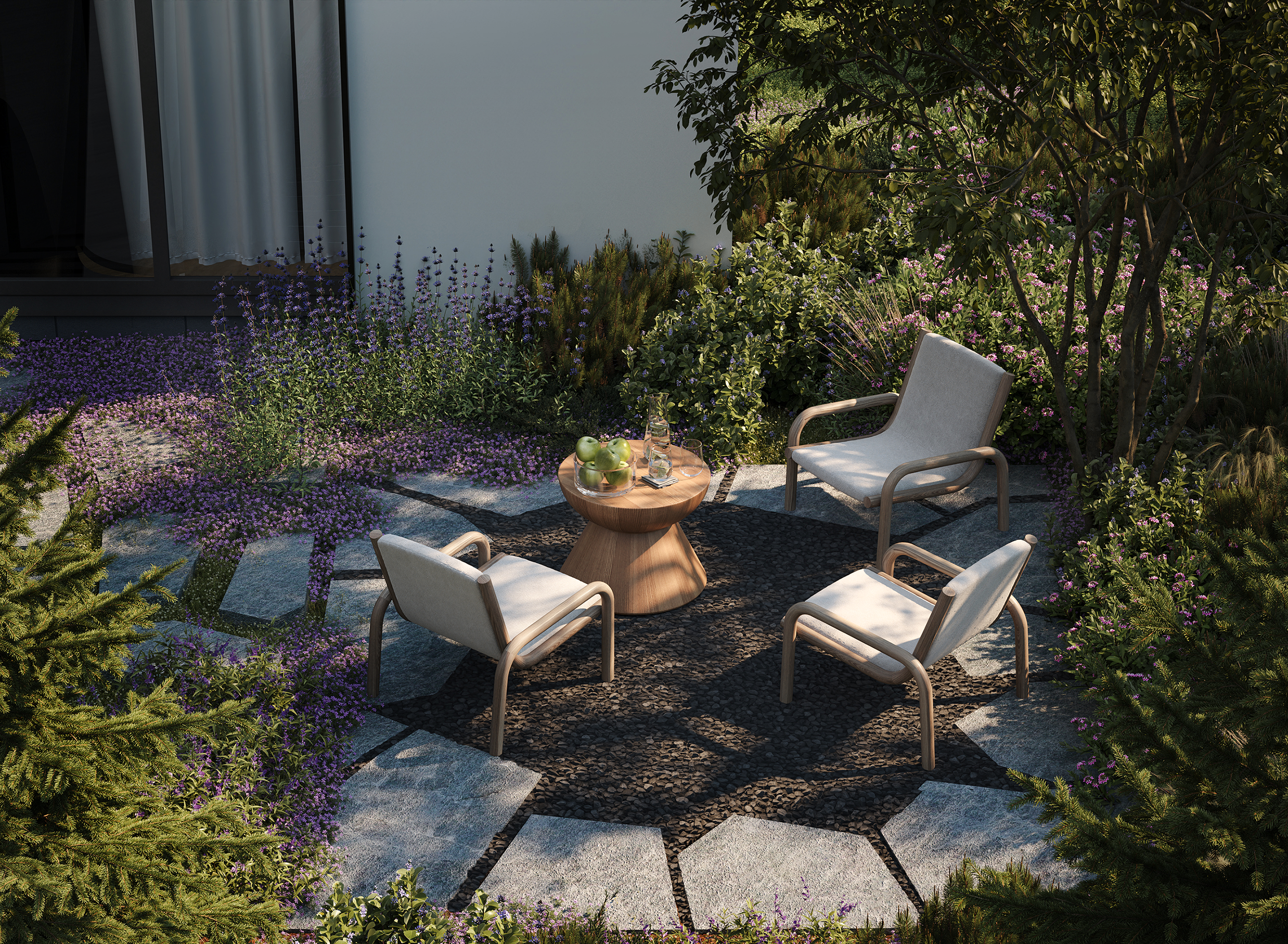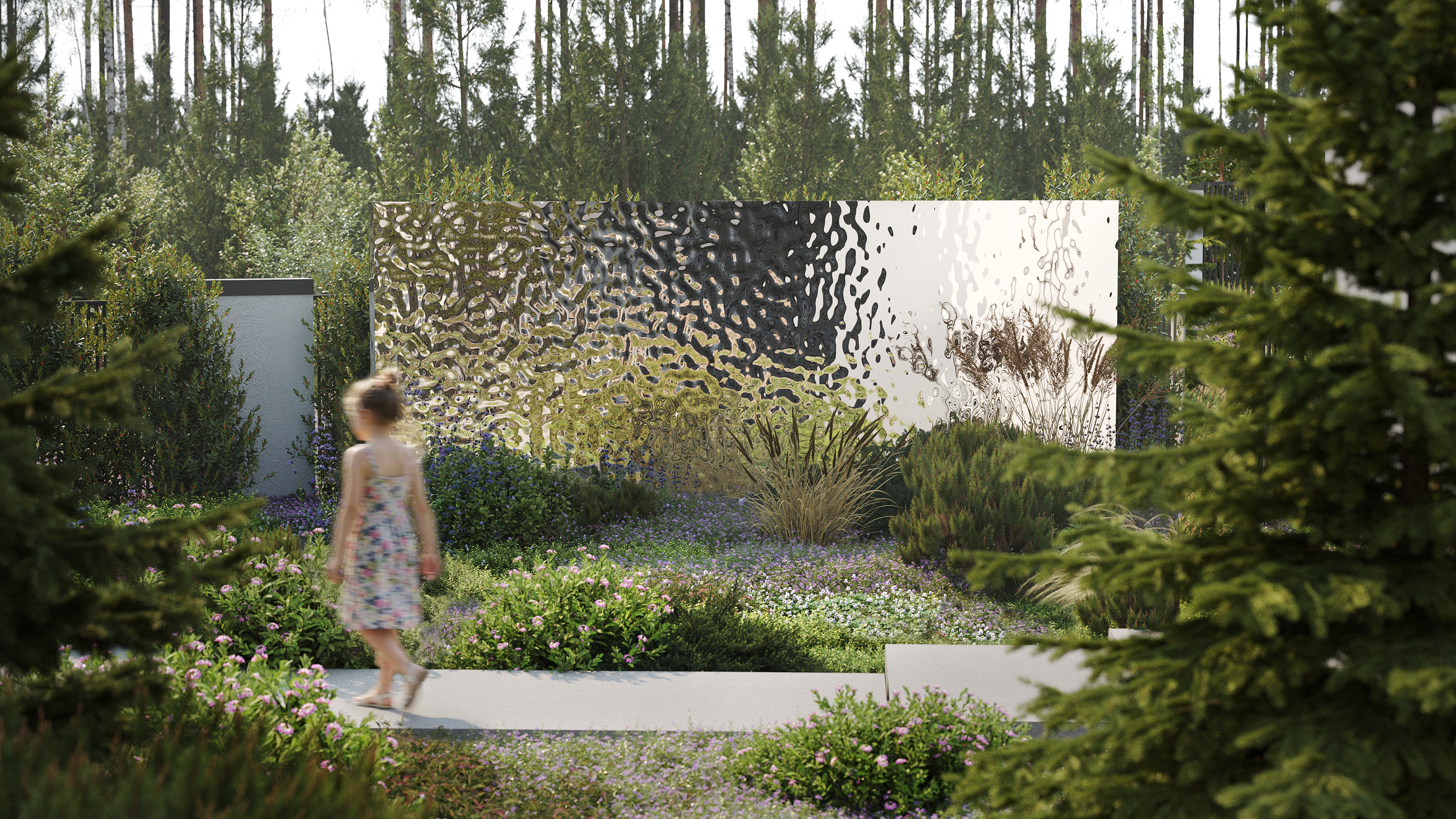 Рендеры выполненные для проекта ландшафтного бюро ZELEN. 3dsMax + corona render, с коррекцией нейросетями (добавление людей)