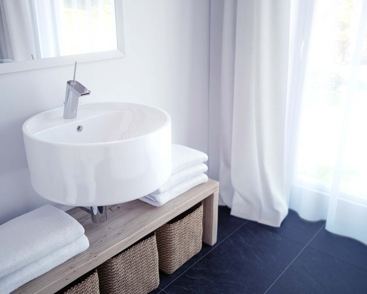 Красиво, чистенько, либо плитка большая, либо раковина низко. Масштаб сомнителен, может из-за ракурса, по-крайней мере так кажеться, может не прав. :-)
