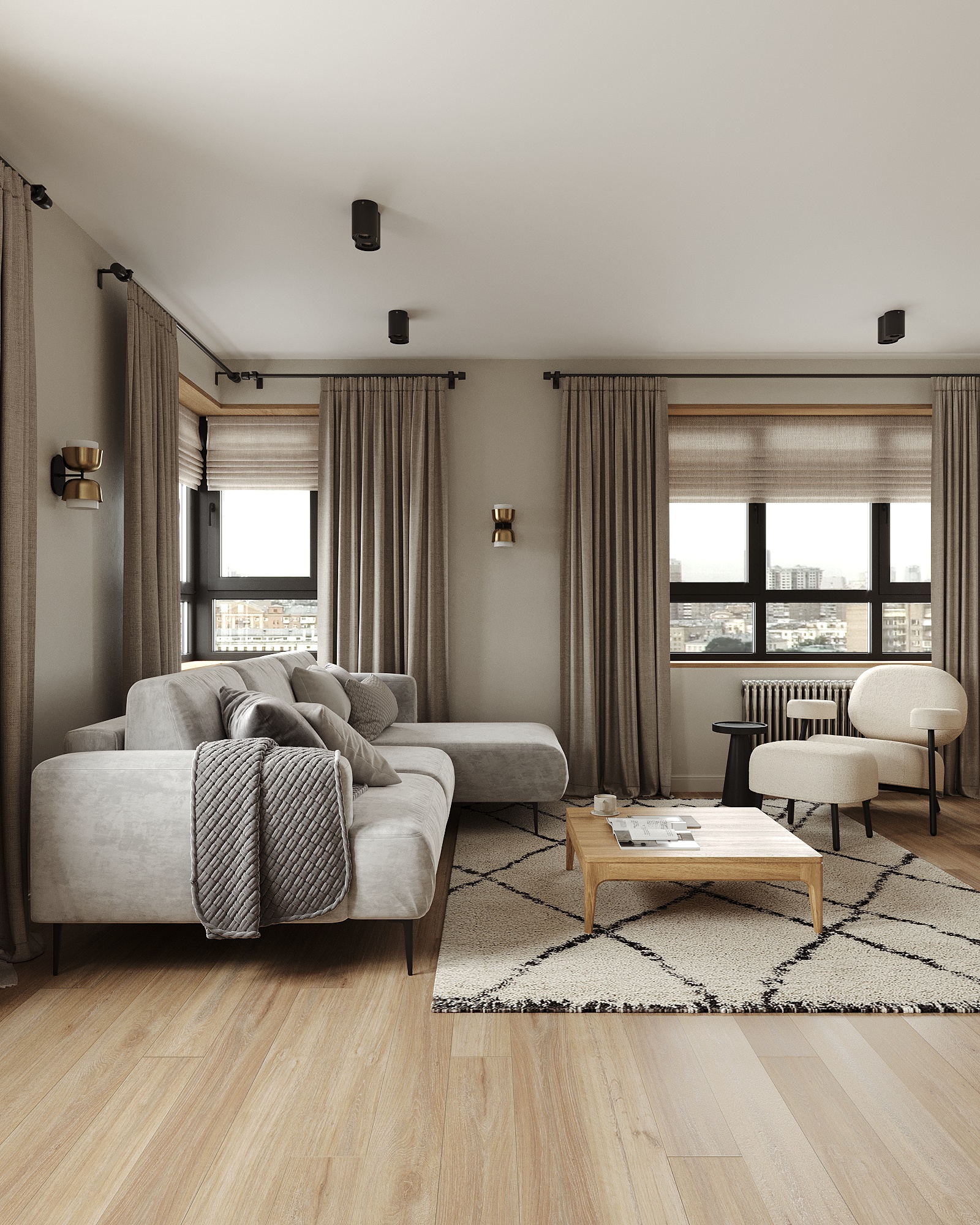 Ковер и светлое дерево создали чудесное сочетание.