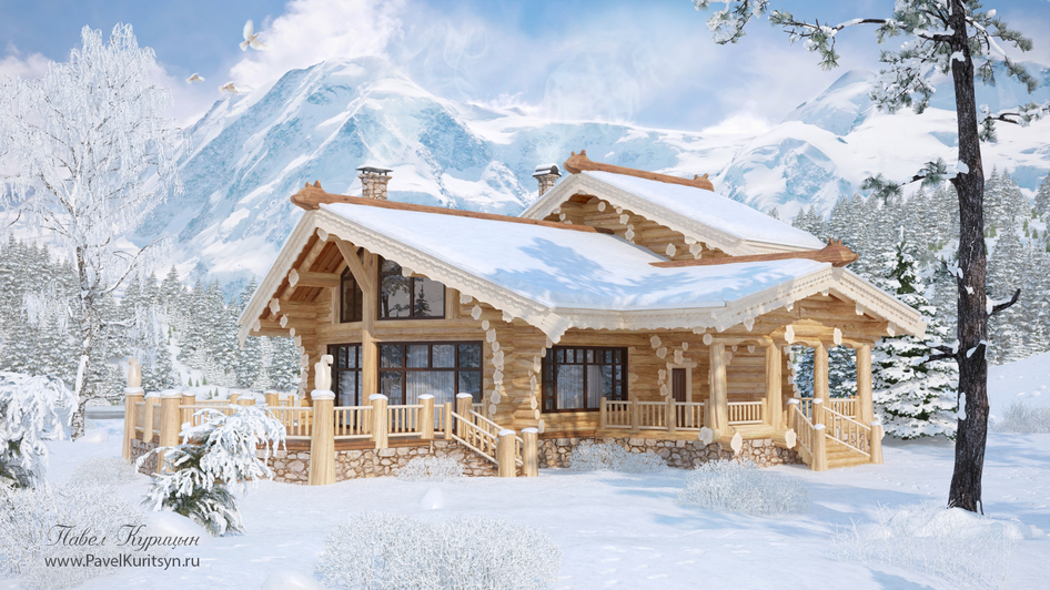 с точки зрения архитектуры и усадки деревянных строений домик нереальный. Центральный столб витража главного фасада превратится в целое инженерное сооружение и рубить это будут только на голову долбанутые рубщики которым терять нечего. Архитектору учить матчасть.