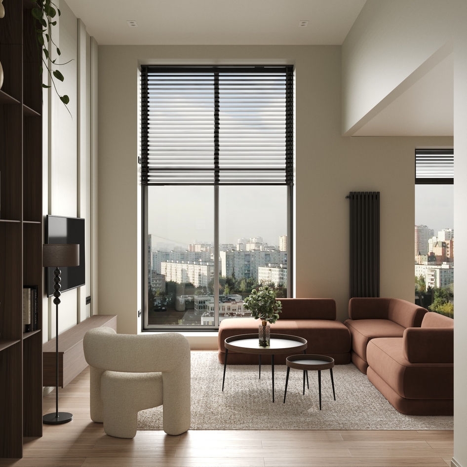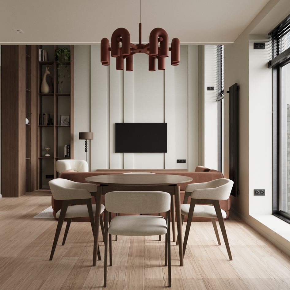 Дизайн и визуализация кухни-гостиной с панорамными окнами