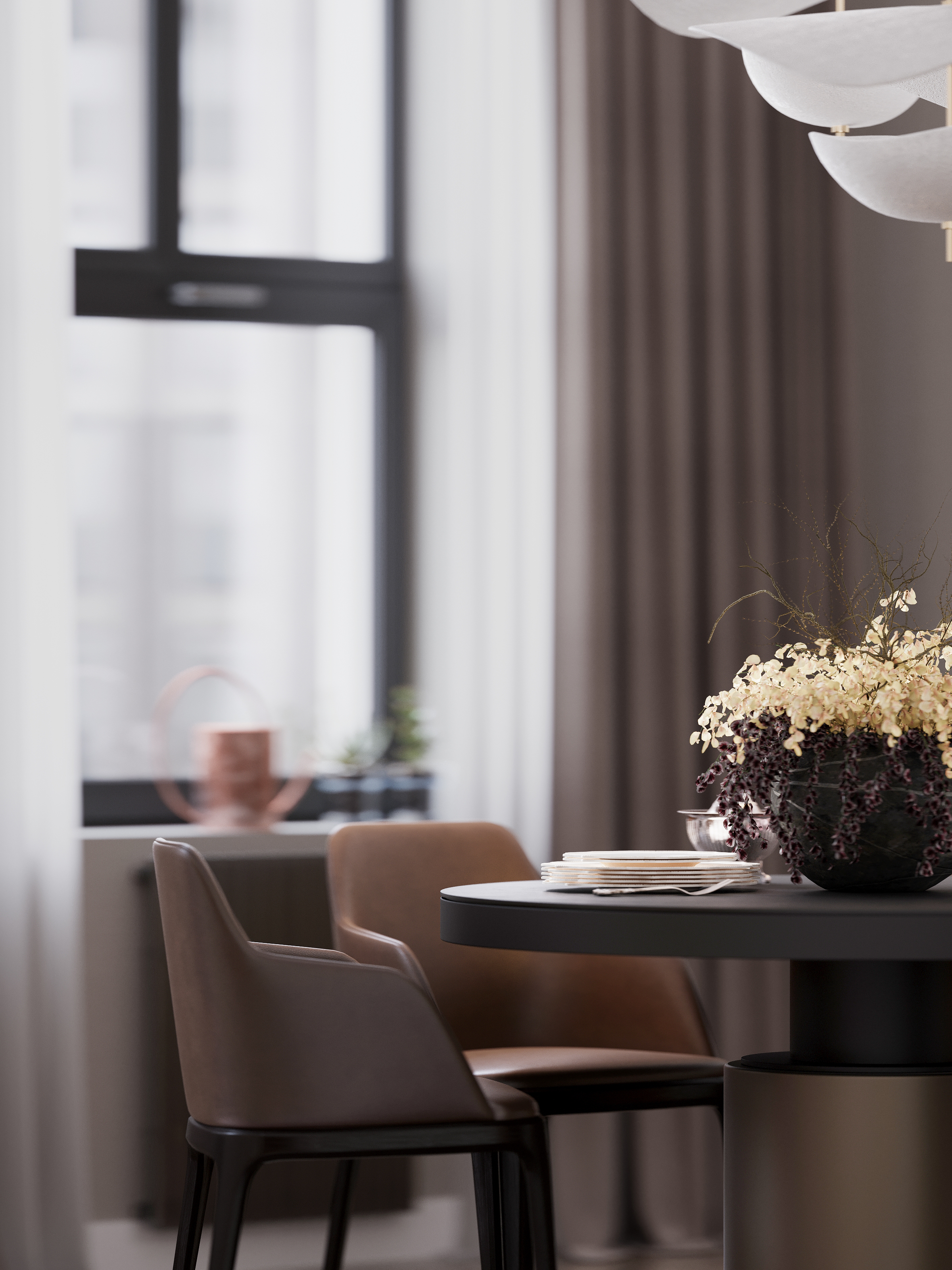 Визуализация кухни,гостиной,зоны отдыха в оттенках сепии...3d max, Corona Render, Photoshop