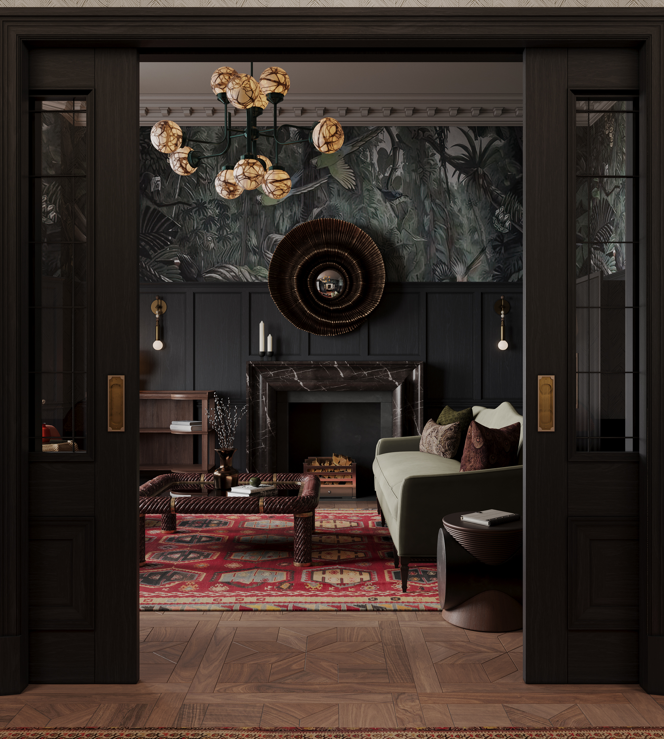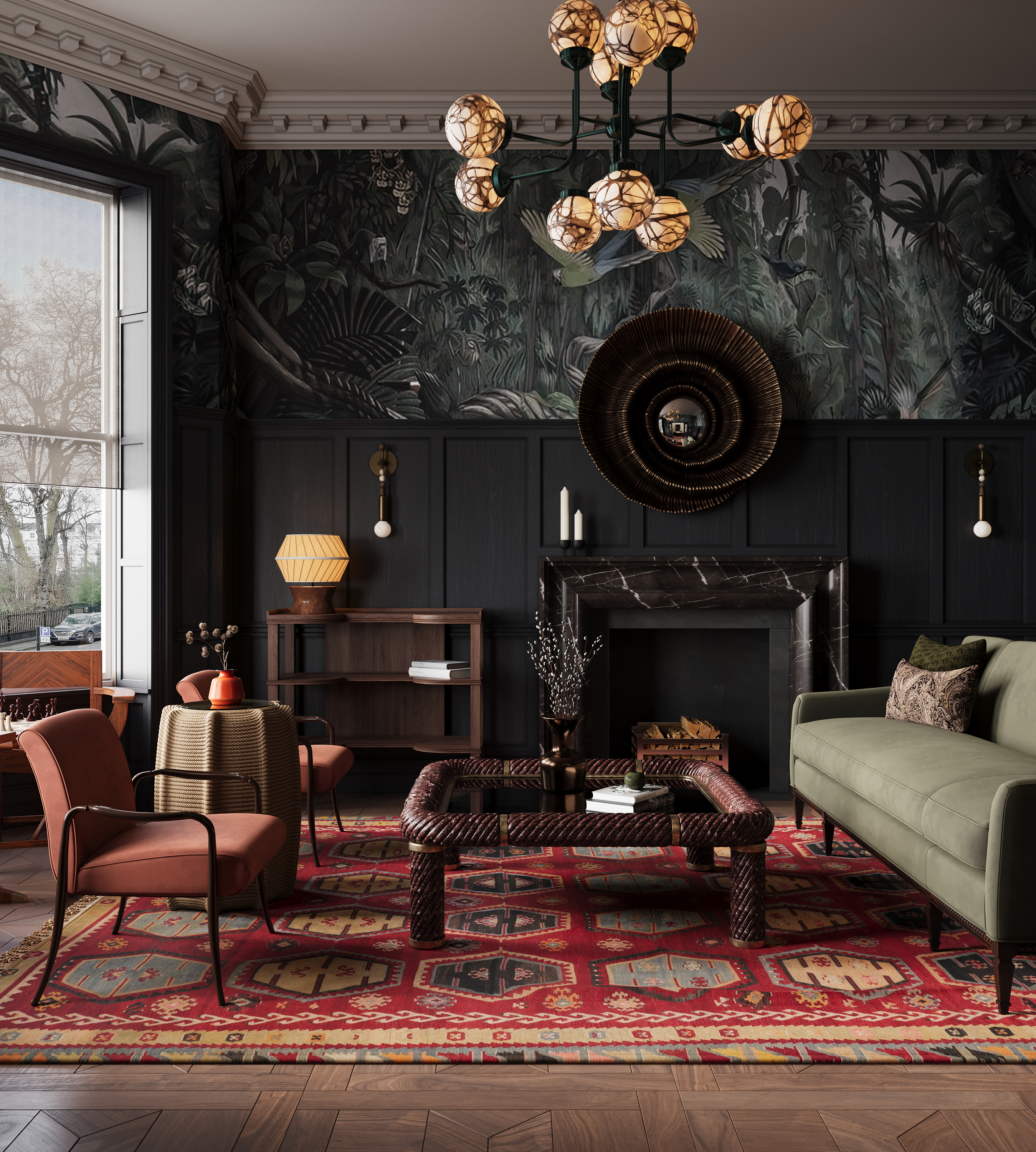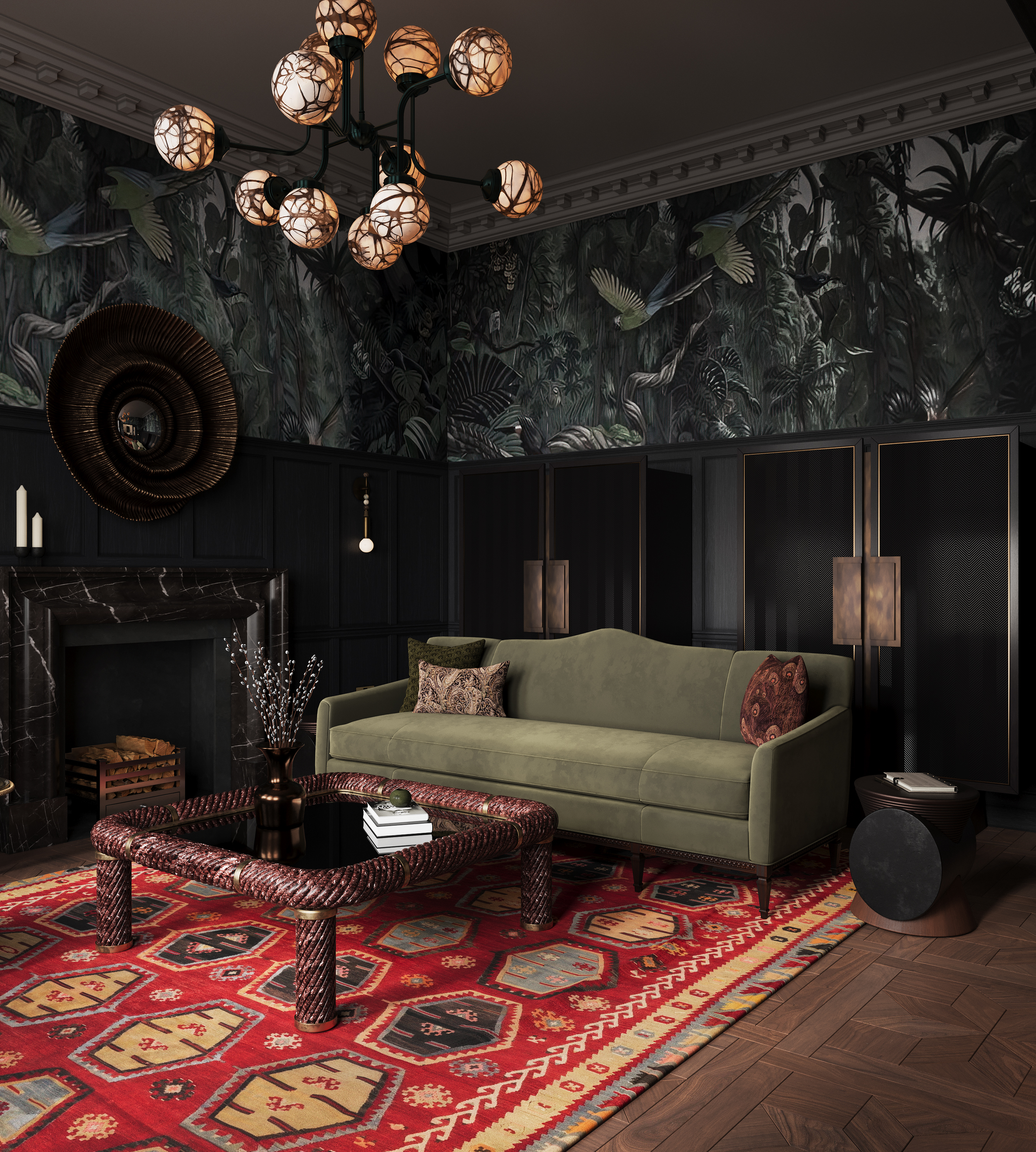 Визуализация дизайн проекта, разработанного студией Property of London Design Atelier. Настоящая английская квартира, на мой взгляд) Почти нет готовых моделей с 3ddd, кроме декора. Работали в паре с моделлером, создавая коллекционные предметы мебели