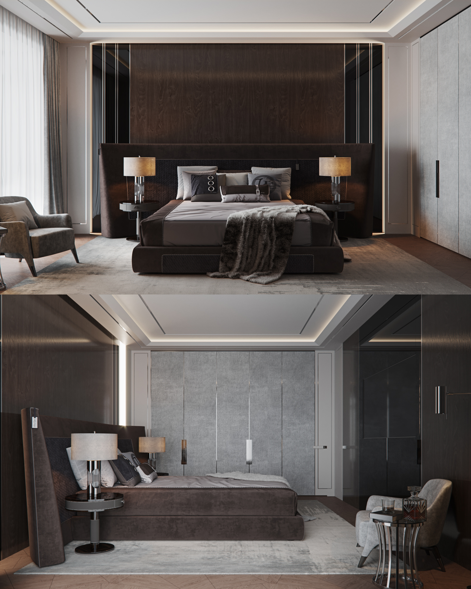 Визуализация спальной комнаты. Фрагмент из большого проекта двухуровневой квартиры