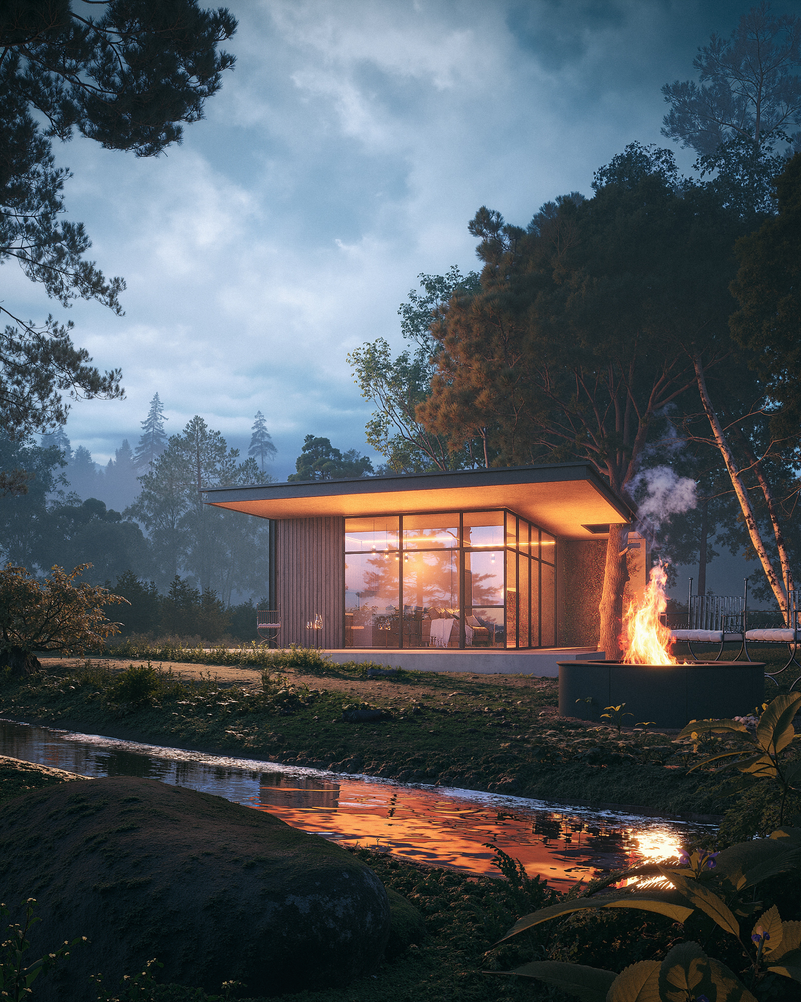 Делая коммерческую визуализацию (моя предыдущая работа с пустыней), сначала был запрос сделать лес, но позднее задача поменялась, и сцена с лесом осталась в столе.