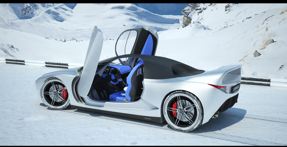 Снег на переднем плане слишком равномерный, плоский, как и следы, какой-то грязный, бэк плохого качества контрастирует в плохом смысле , модель автомобиля прикольная, мне нравится. Идею не заметил.