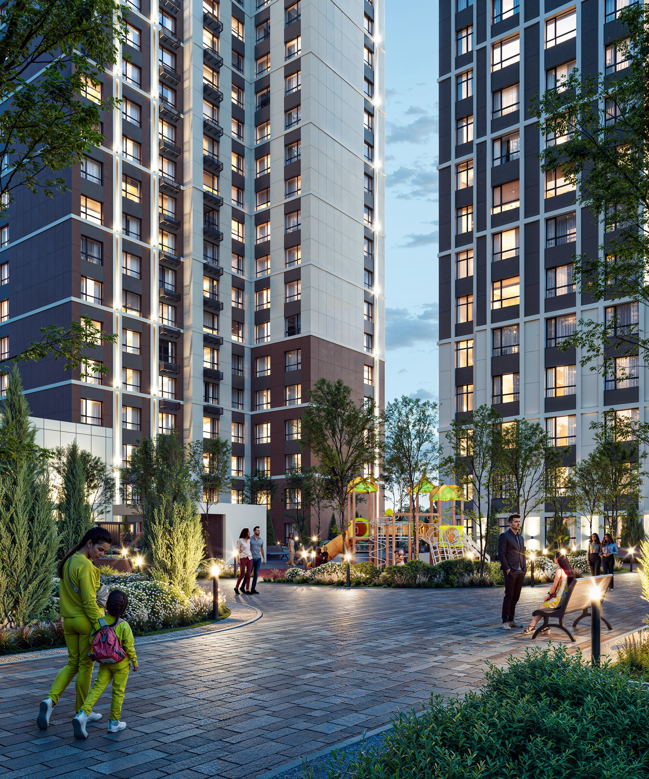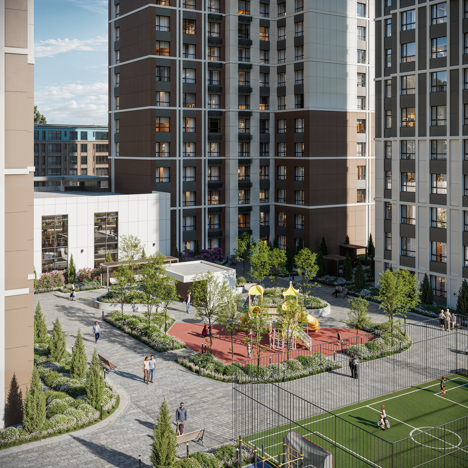 Визуализация жилого комплекса "Alau Towers" Локация: Казахстан, Караганда Софт: 3ds max, Corona Render, Photoshop, Stable Diffusion, Magnific AI Ссылка на Behance: