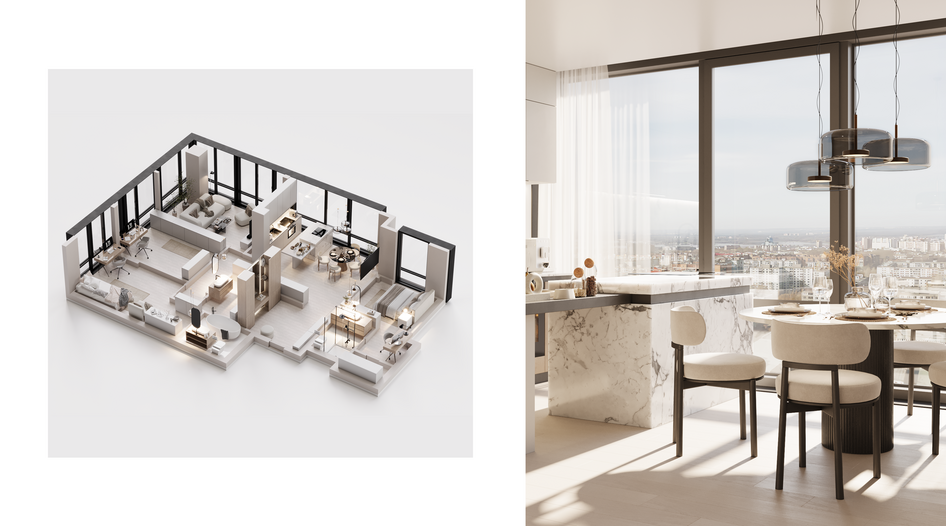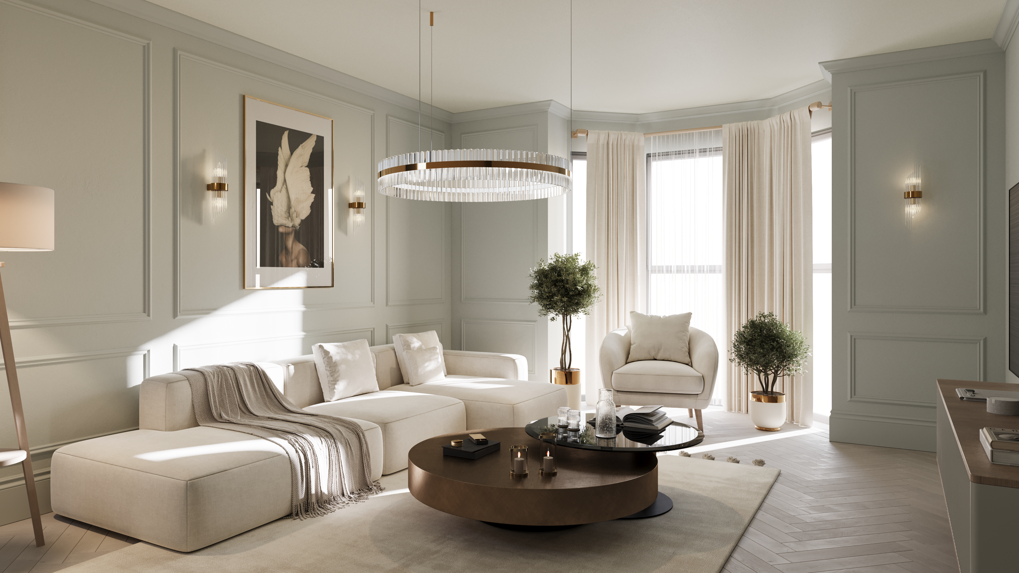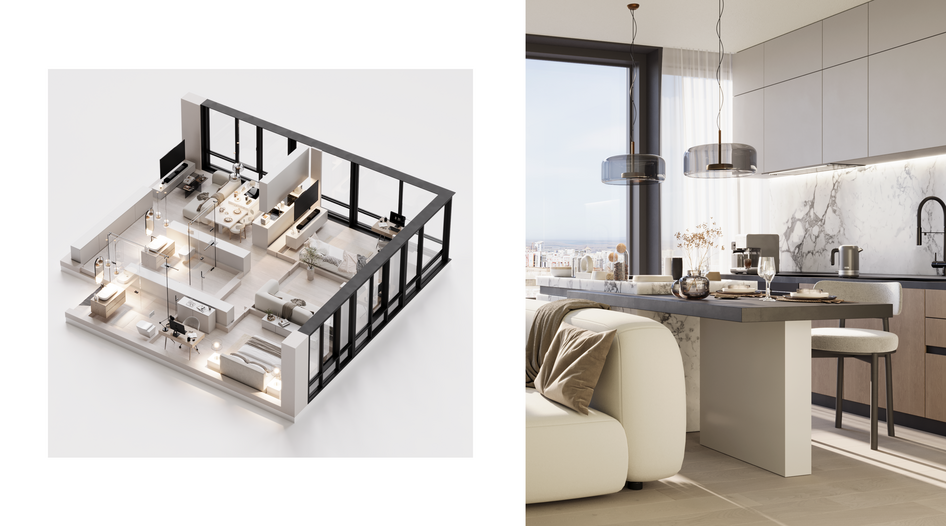 Визуализация интерьера в жилом комплексе «Кватро» Местоположение: г. Самара Компания: Новый Дон 3D-визуализация: Hi Poly Studio ПО: 3ds max, Corona Render, Adobe Photoshop, Stable Diffusion